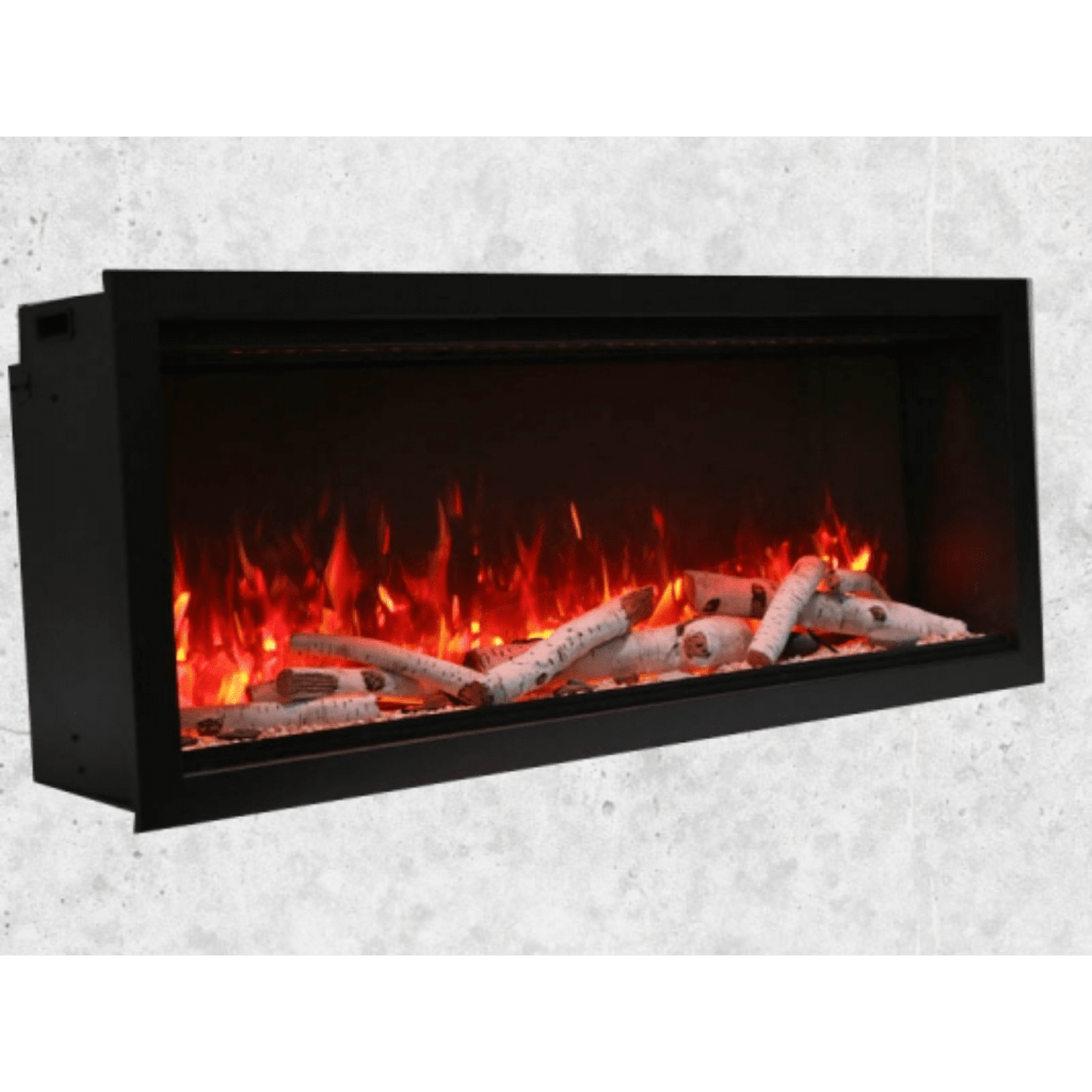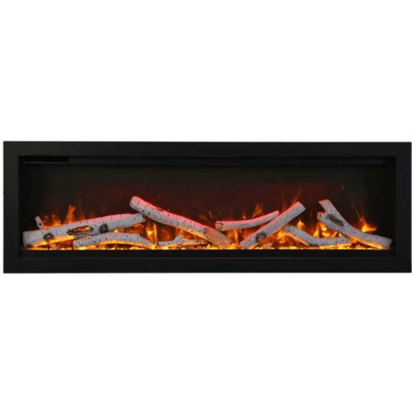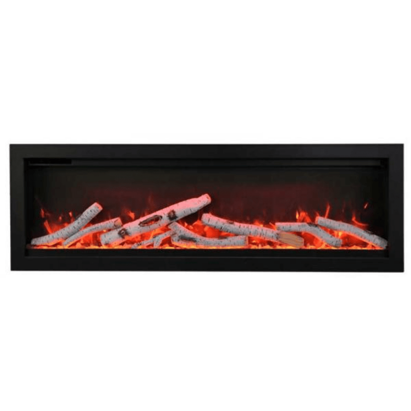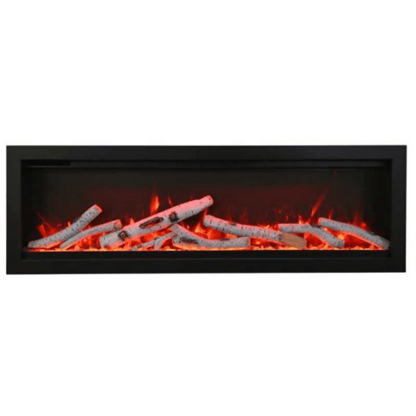 The Amantii Symmetry 50-in Basic Built-In Electric Fireplace creates a modern and stylized finished appearance that will bring decorative highlight to your space. Purposefully designed with a narrower depth than most electric fireplace, the Symmetry can be installed fully recessed into your wall or semi-flush mounted within a 2x4 wall (requires SYM-XS surround).
