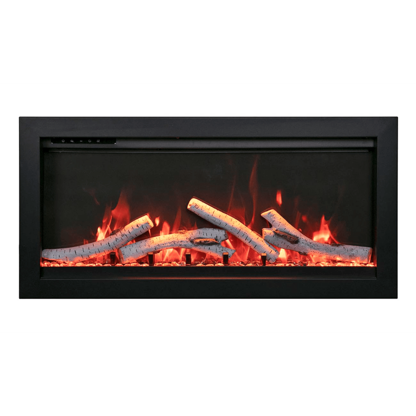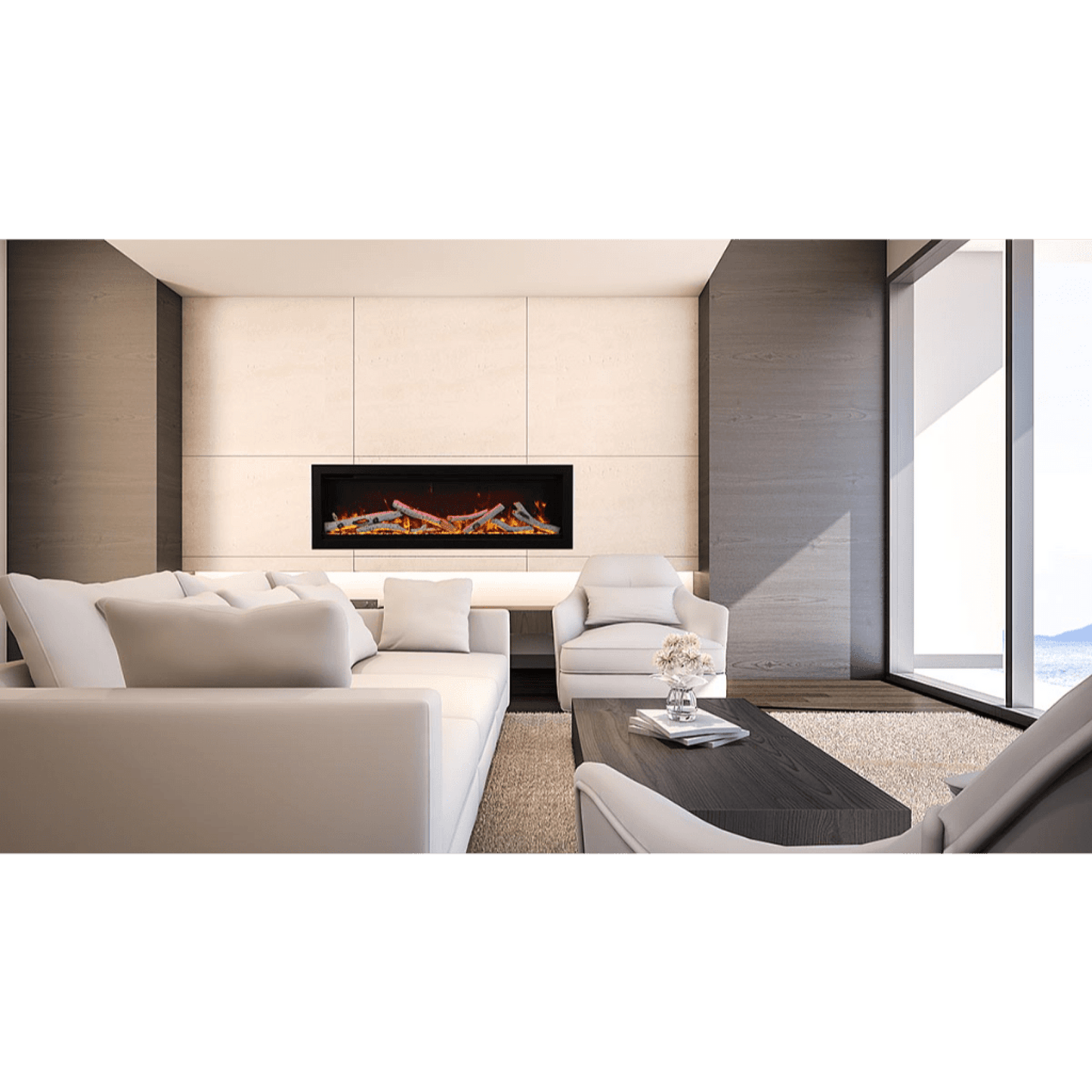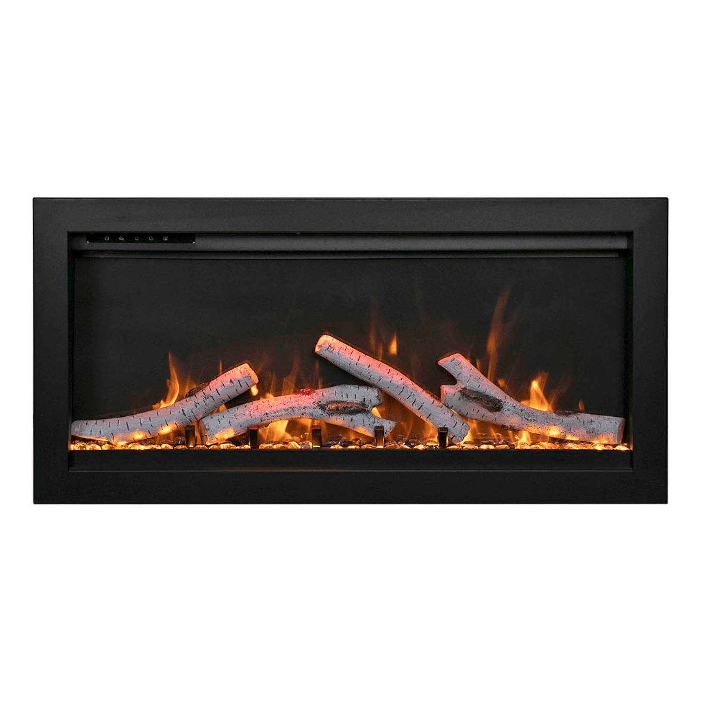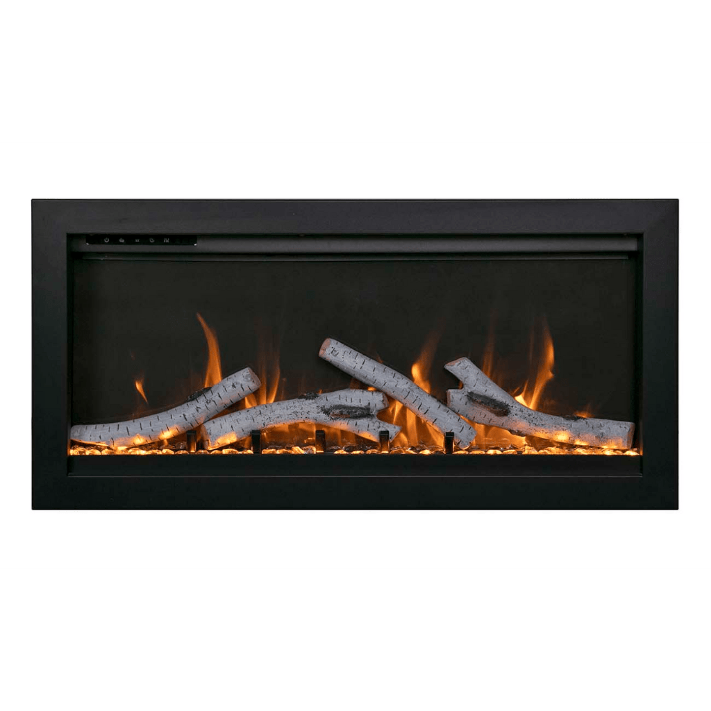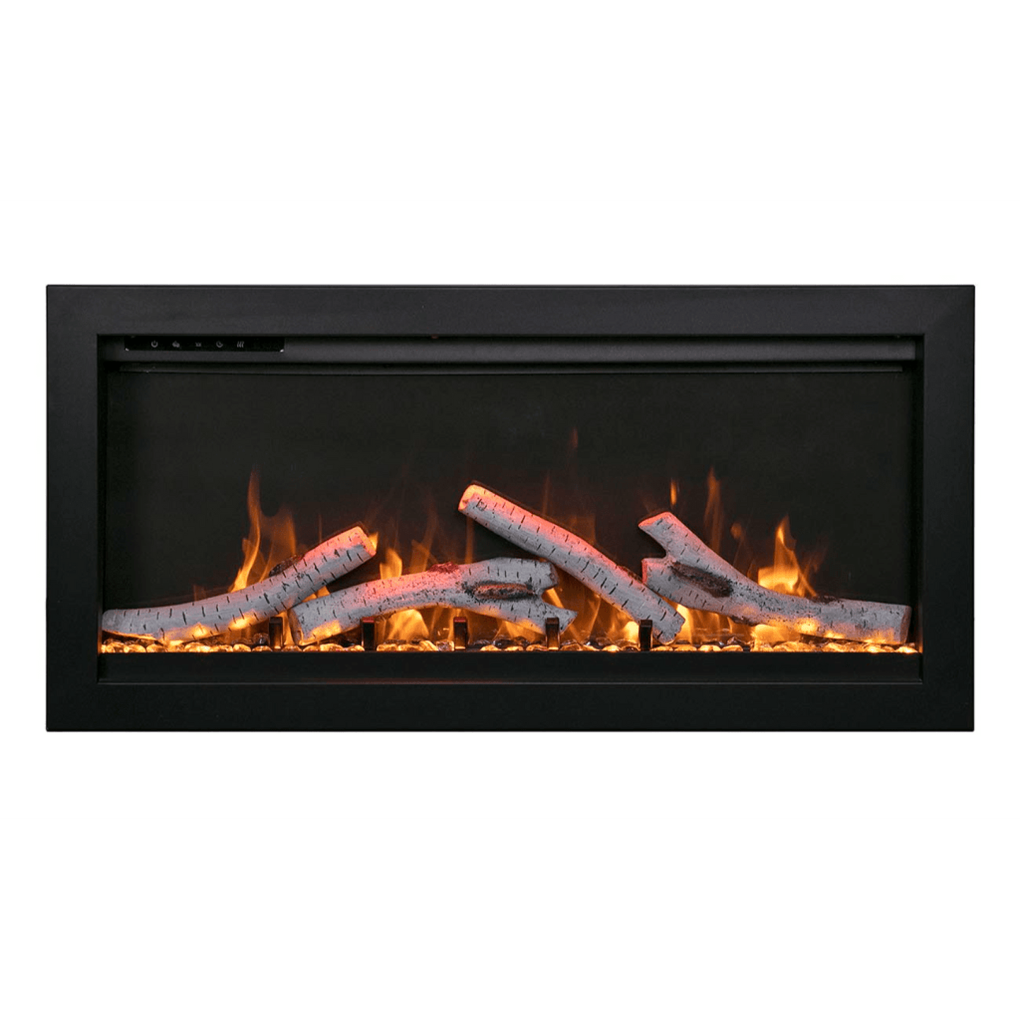 The Amantii Symmetry 50-in Basic Built-In Electric Fireplace creates a modern and stylized finished appearance that will bring decorative highlight to your space. Purposefully designed with a narrower depth than most electric fireplace, the Symmetry can be installed fully recessed into your wall or semi-flush mounted within a 2x4 wall (requires SYM-XS surround).