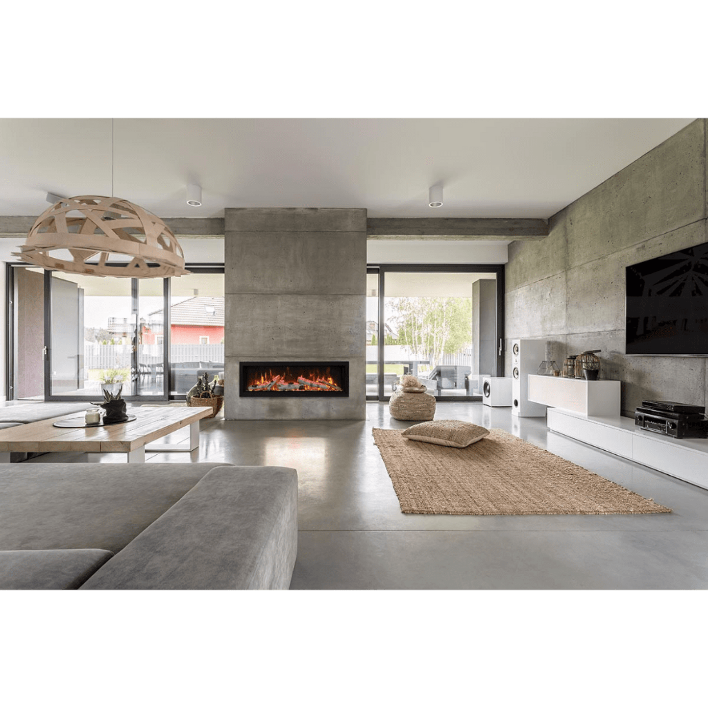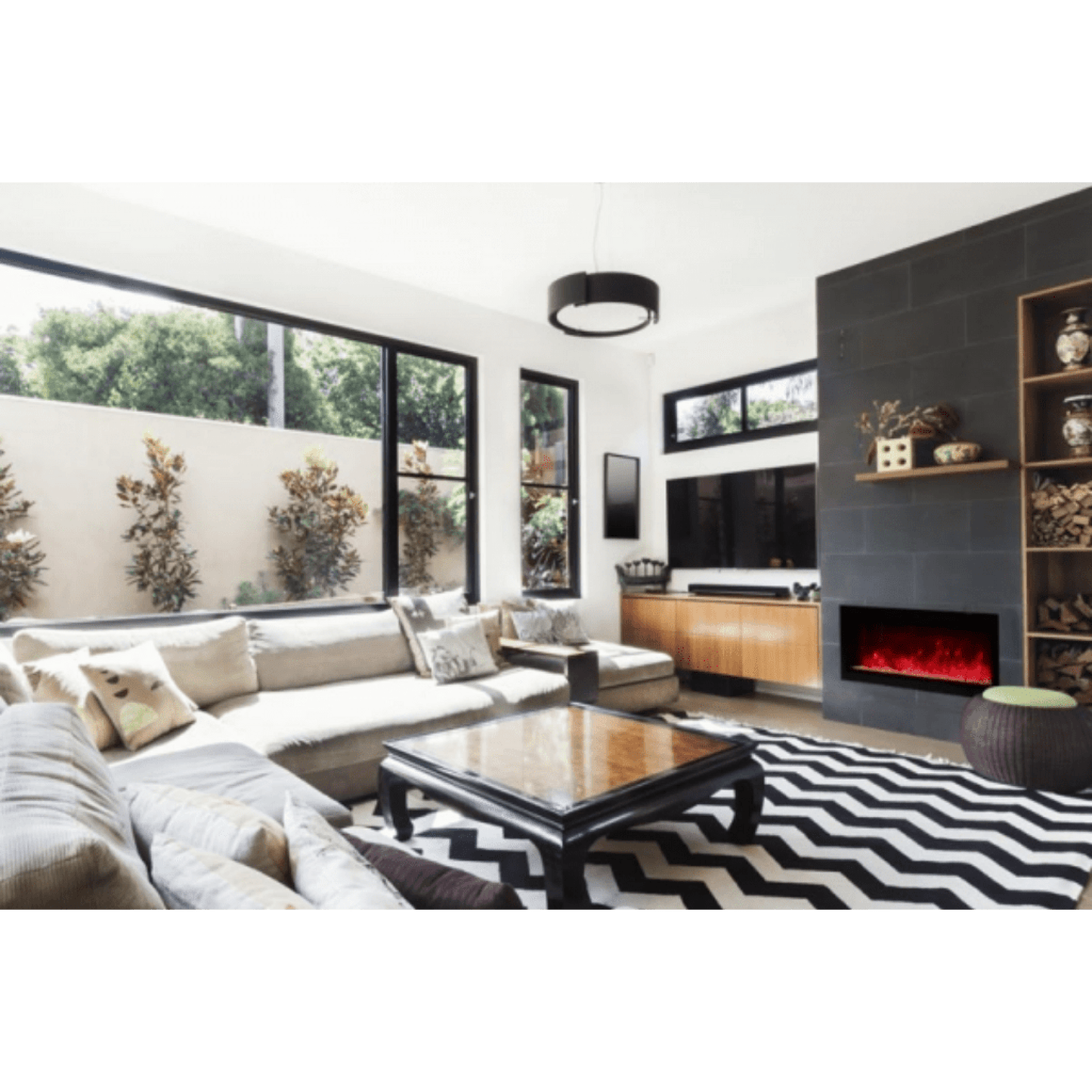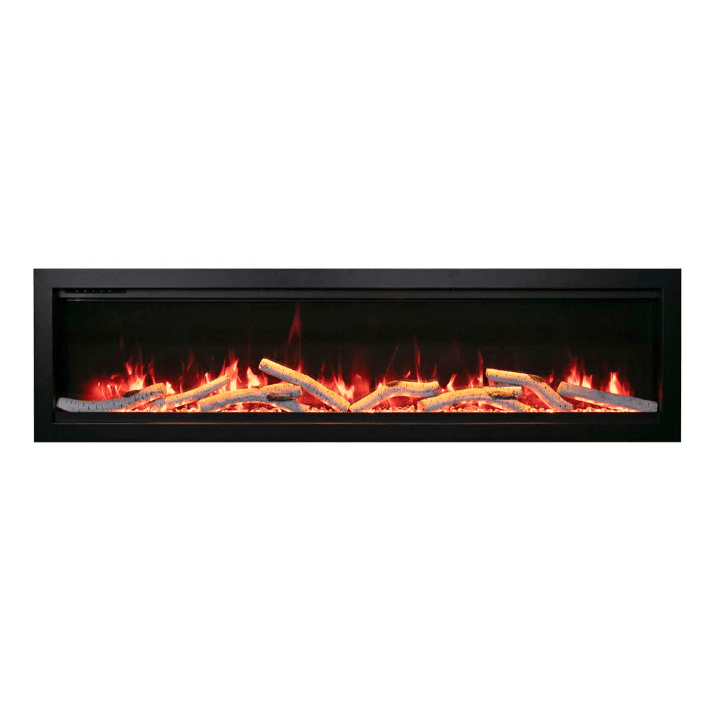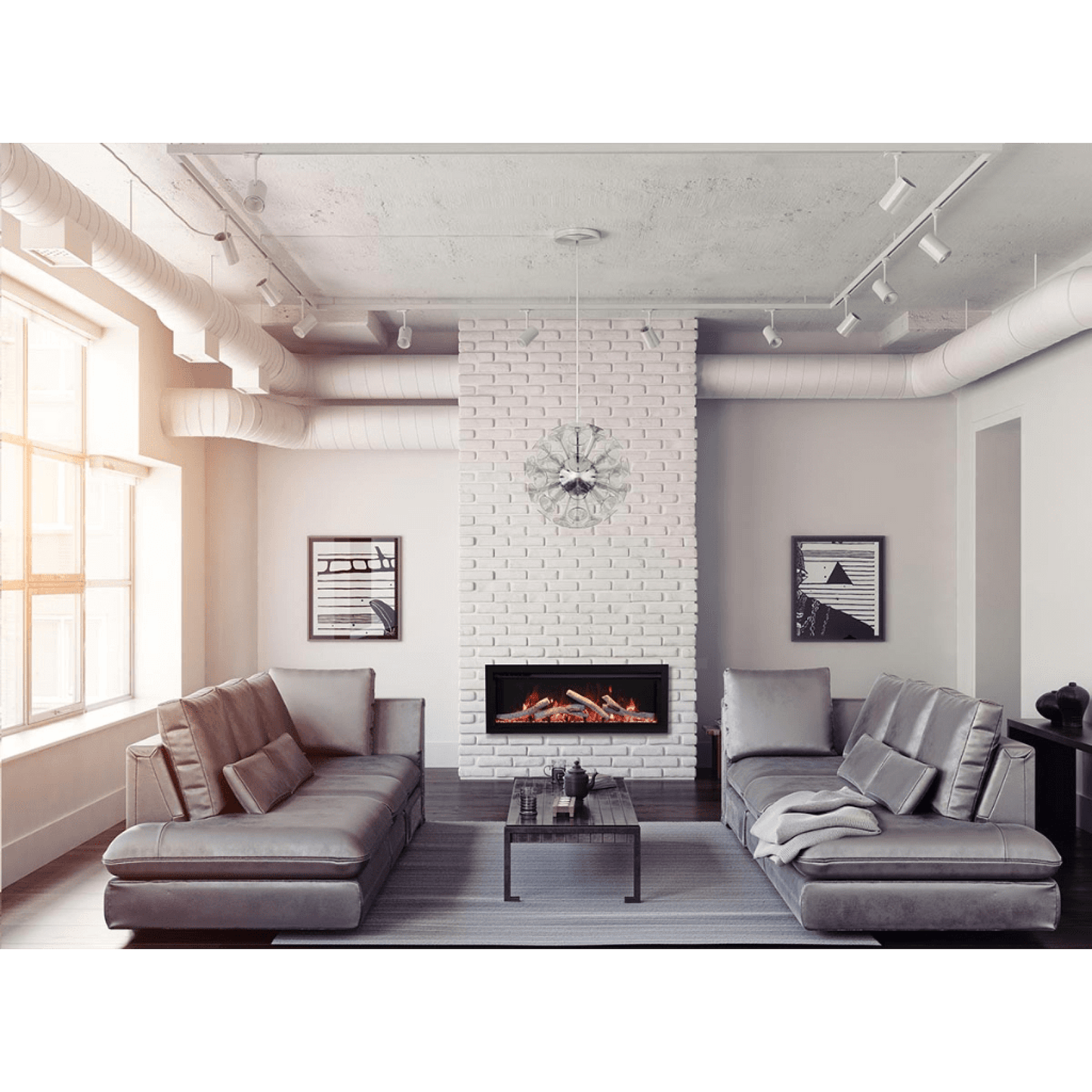 The Amantii Symmetry 50-in Basic Built-In Electric Fireplace creates a modern and stylized finished appearance that will bring decorative highlight to your space. Purposefully designed with a narrower depth than most electric fireplace, the Symmetry can be installed fully recessed into your wall or semi-flush mounted within a 2x4 wall (requires SYM-XS surround).