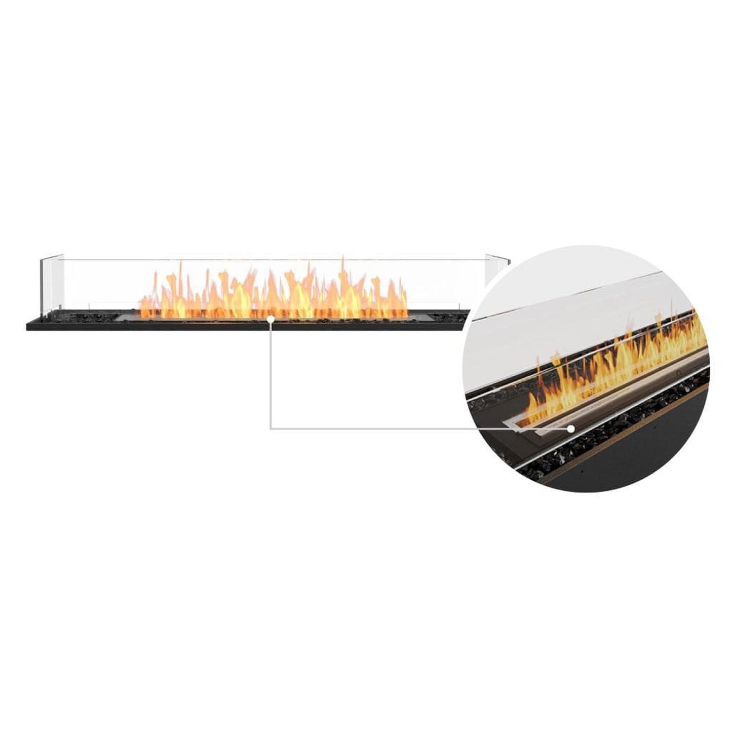 Available in a timeless black finish, Flex Fireboxes come with stainless steel burners and black glass charcoal.