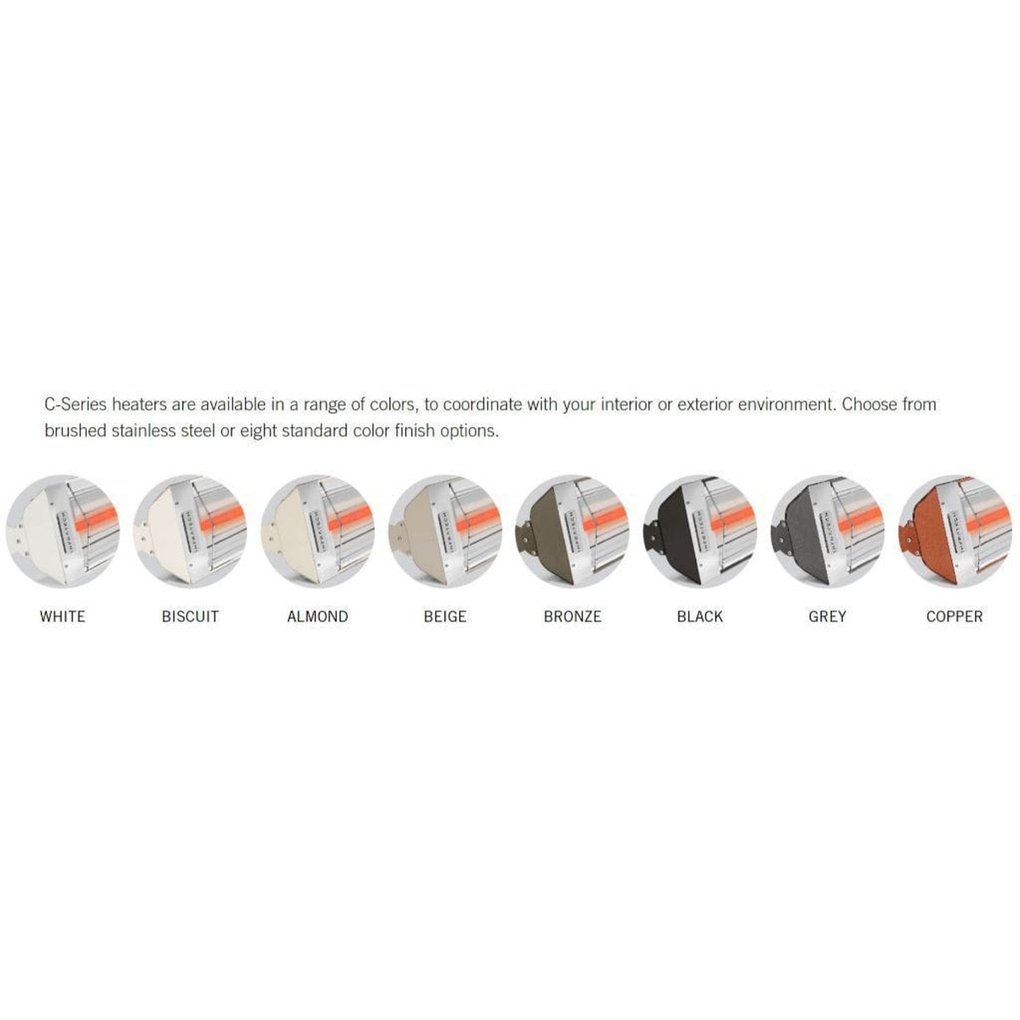C-Series heaters are available in a range of colors, to coordinate with your interior or exterior environment. Choose from brushed stainless steel or eight standard color finish options.
