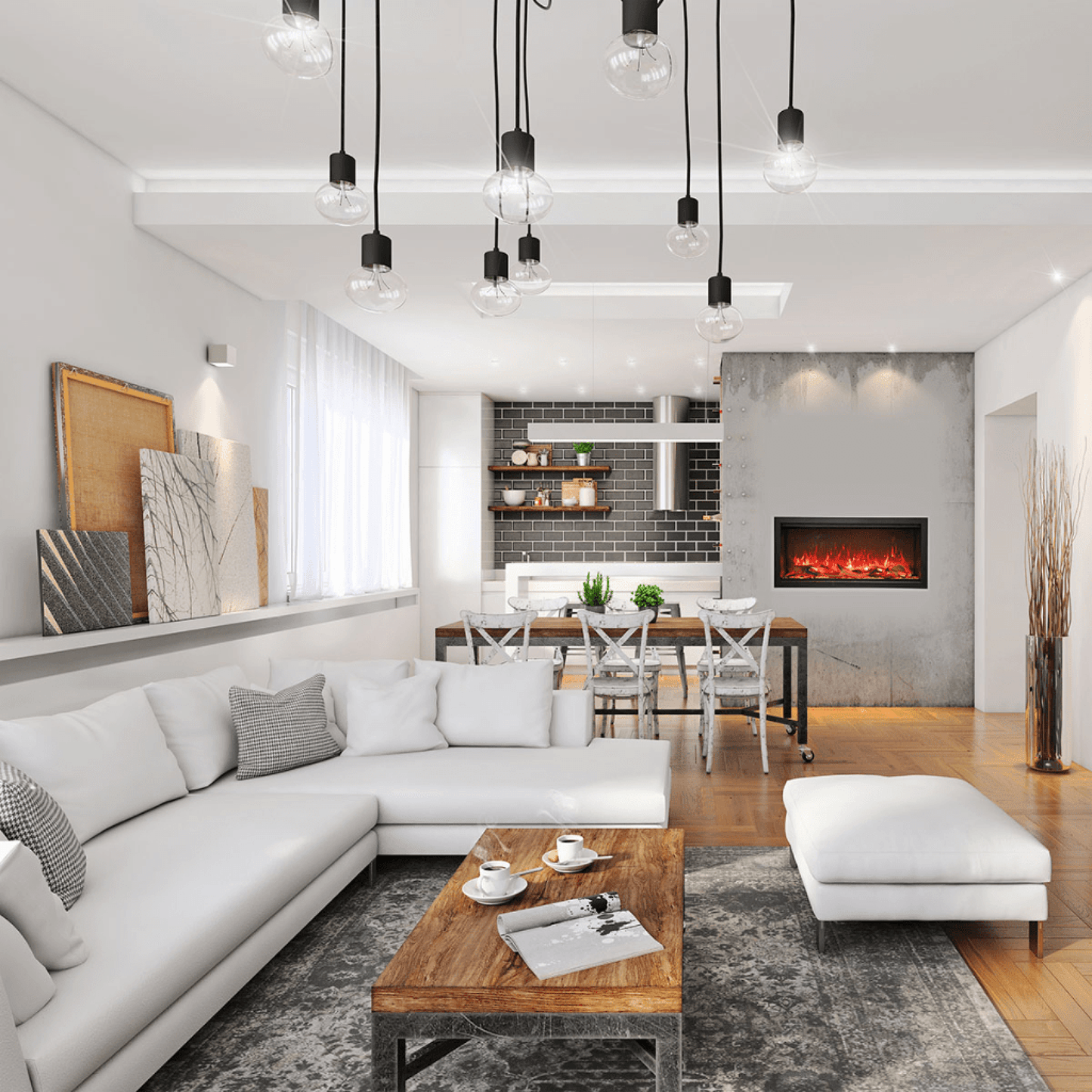 Amantii electric fireplaces can heat rooms approximately 15′-20′ (400 square feet). |