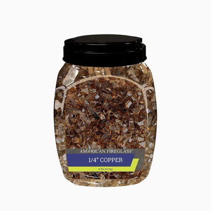 Copper has that rustic, old world charm to it. The color possesses a natural sheen and beautifully accentuates the interiors of any room. If your customers wish to bring the allure of copper to their home, then make sure you offer them our copper fire glass from our 1/4" inch fire glass collection.