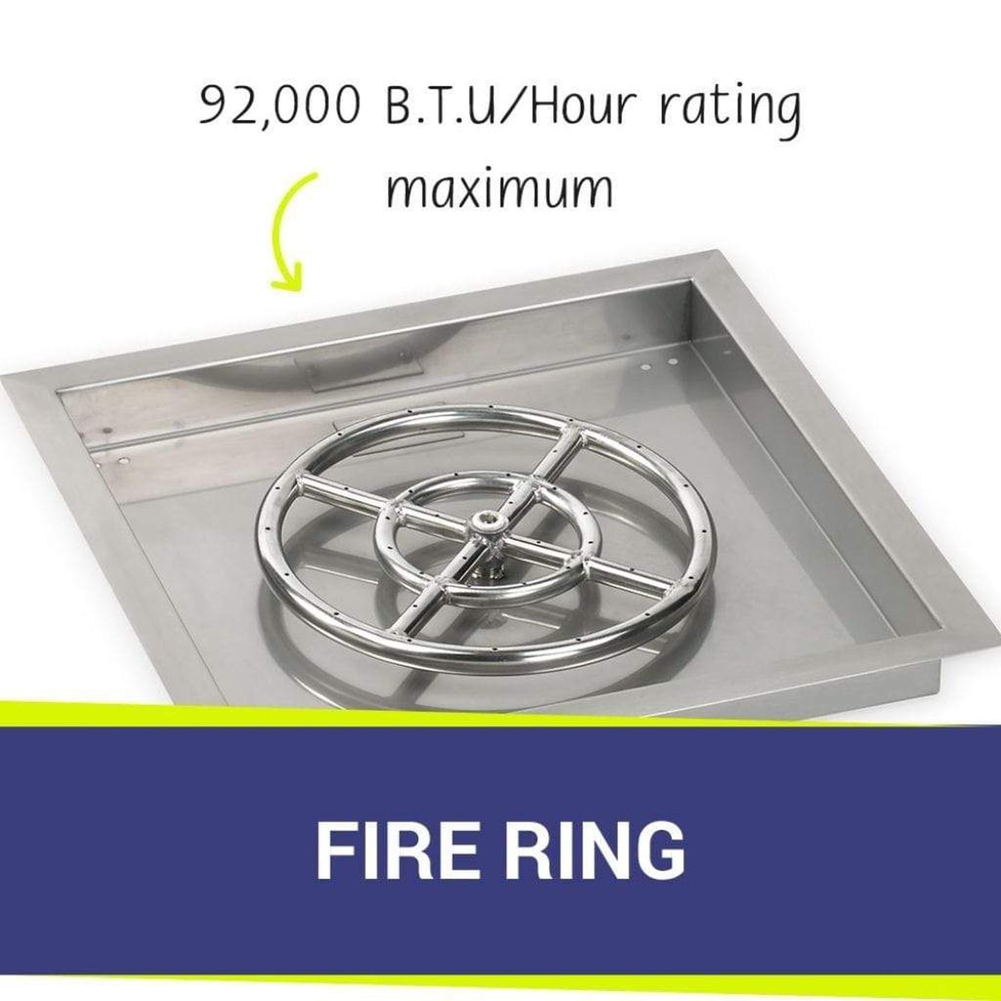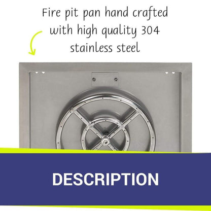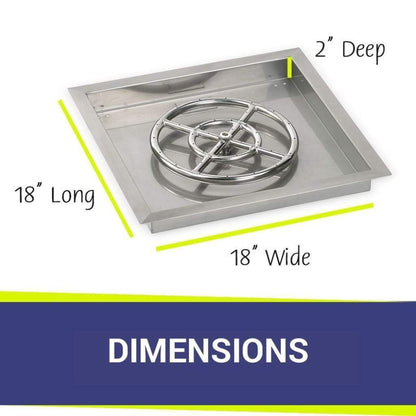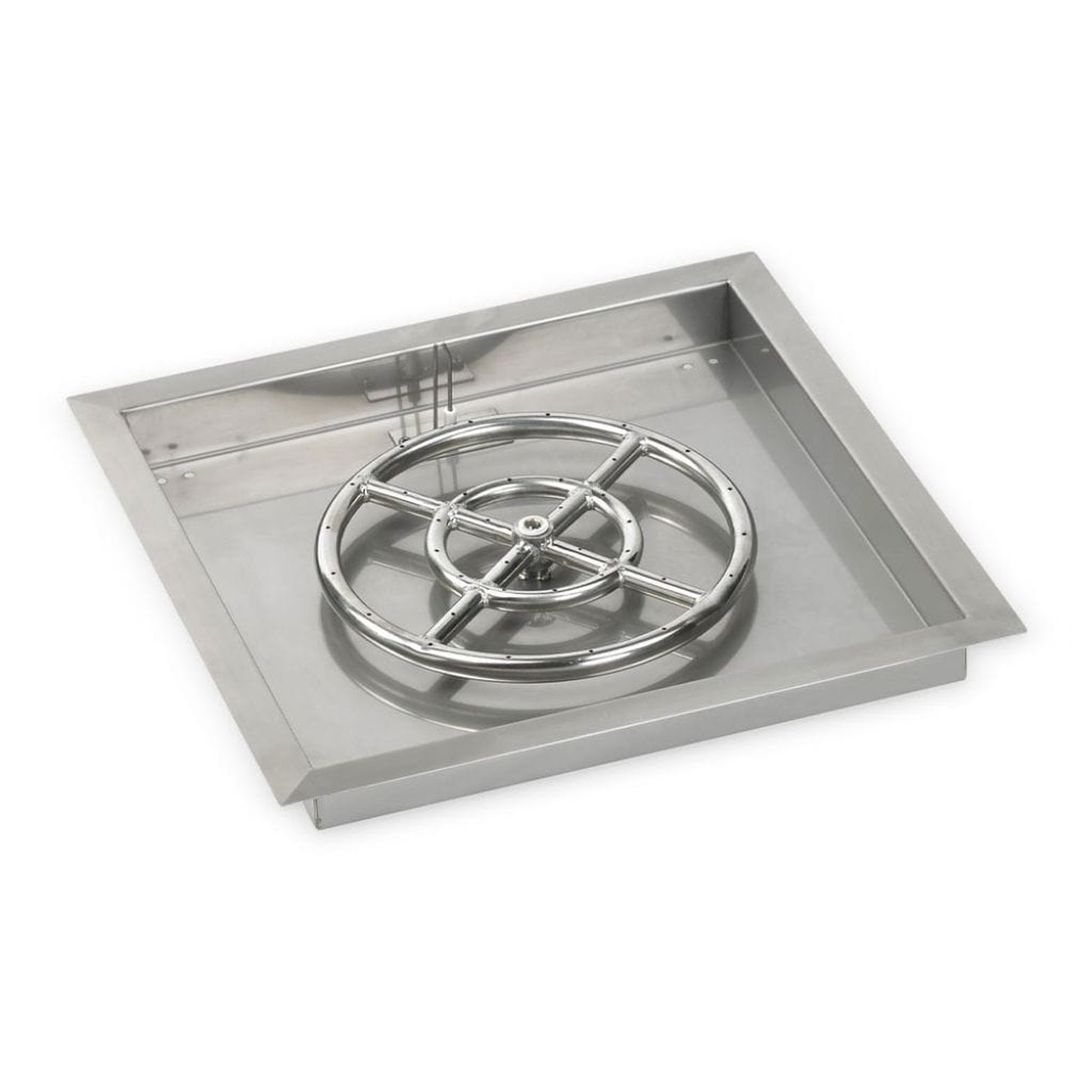 American Fireglass 18" Stainless Steel Square Drop In Pan With 12" Fire Ring