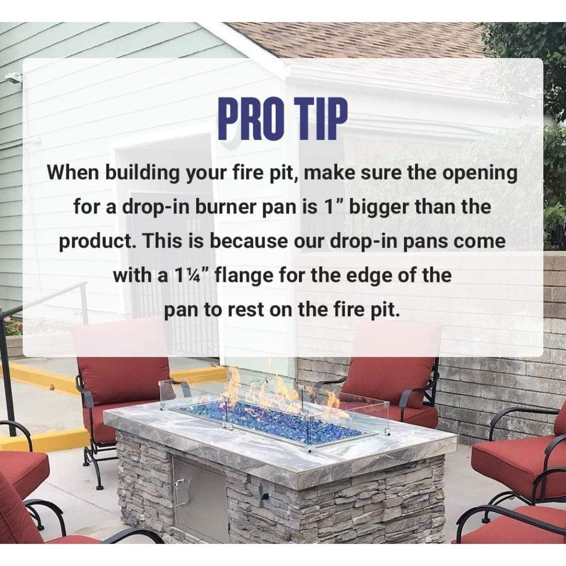 A warm, roaring fire glass display is just what your customers need to add some excitement to their next outdoor get together. The fire will warm the surroundings while the fire glass dazzles your customers and their visitors, becoming the focus of all conversations. However, in order to organize a truly awesome fire glass display your customers will need the right equipment; this includes our 12" square drop-in fire pit burner pan!