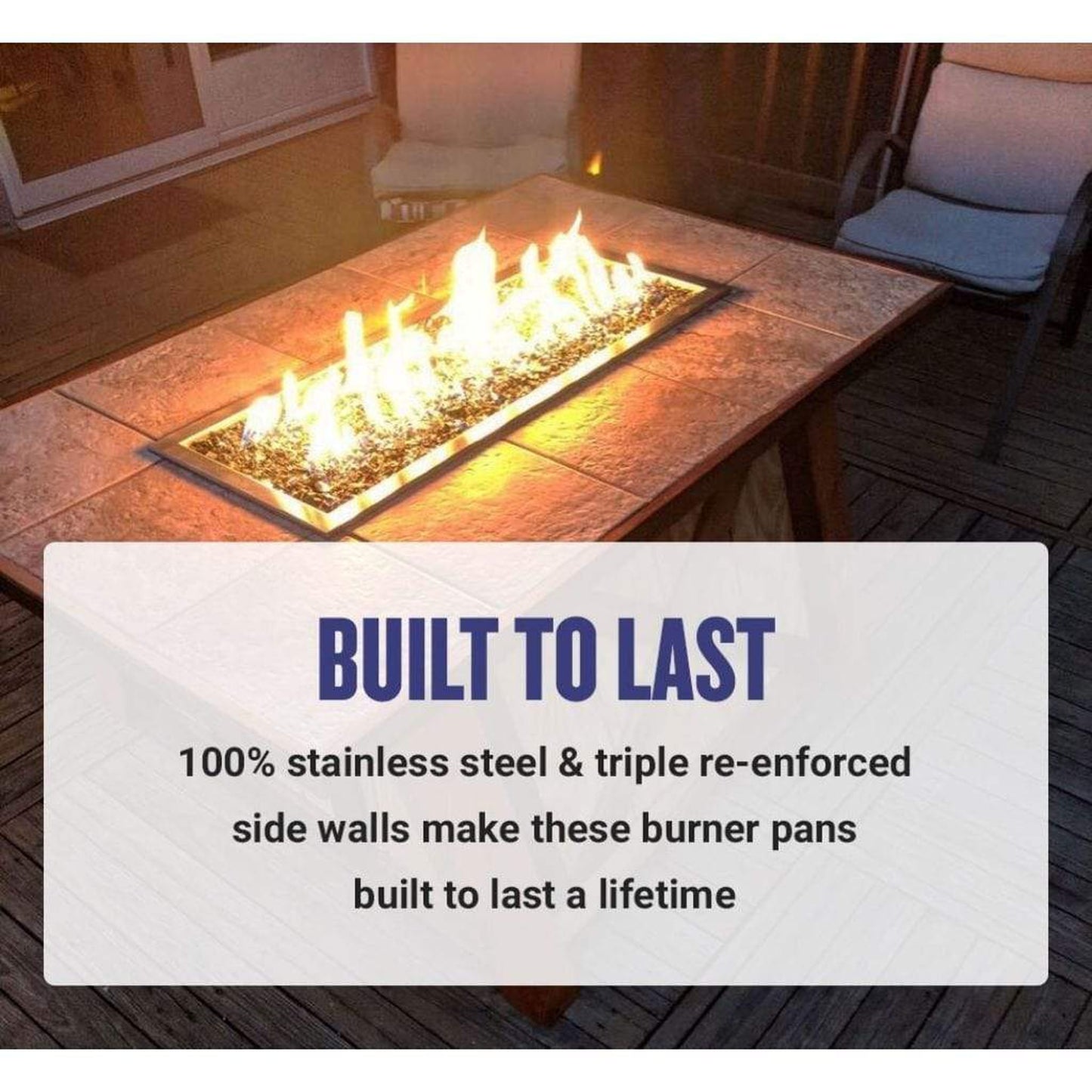 All that remains is to fit a burner atop the square drop-in pan, throw on some fire glass and ignite the flames for a mesmerizing spectacle!