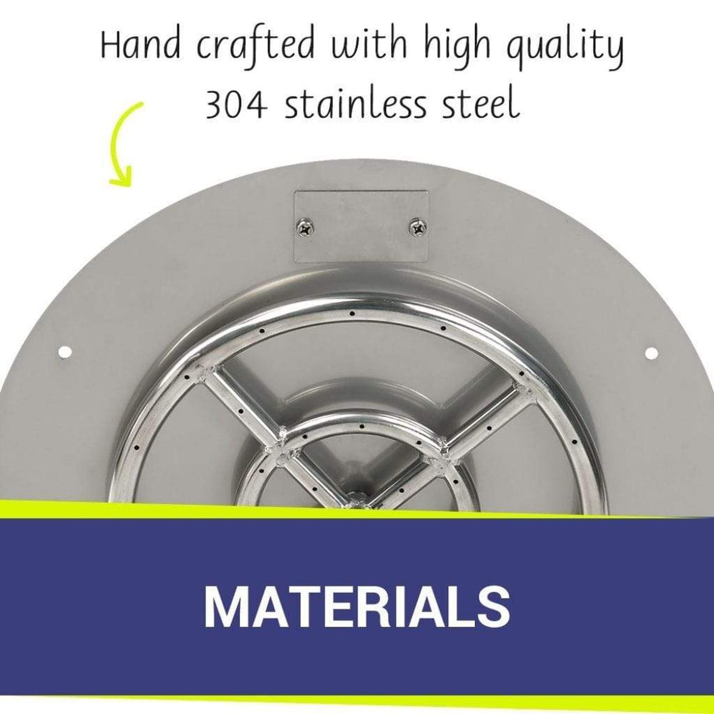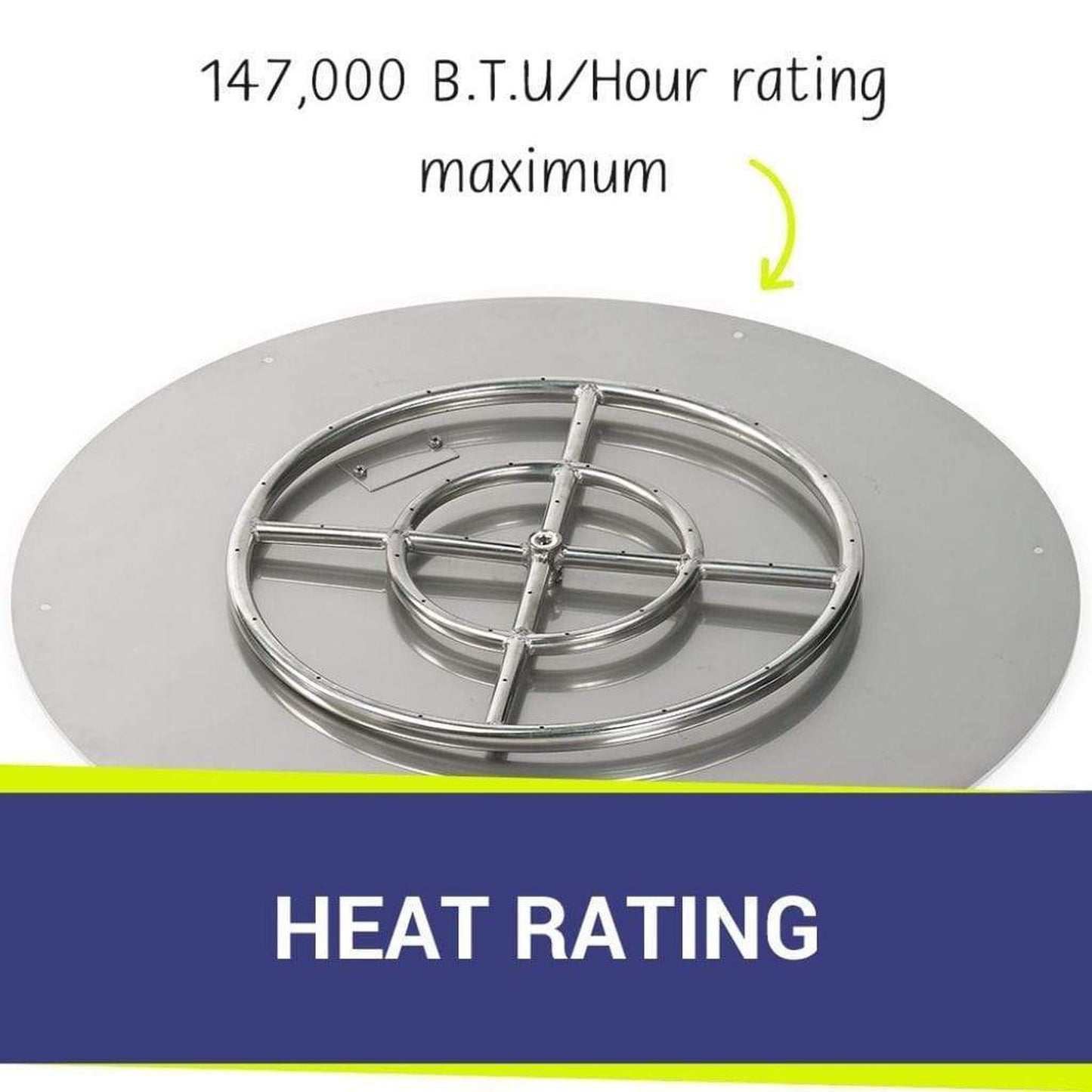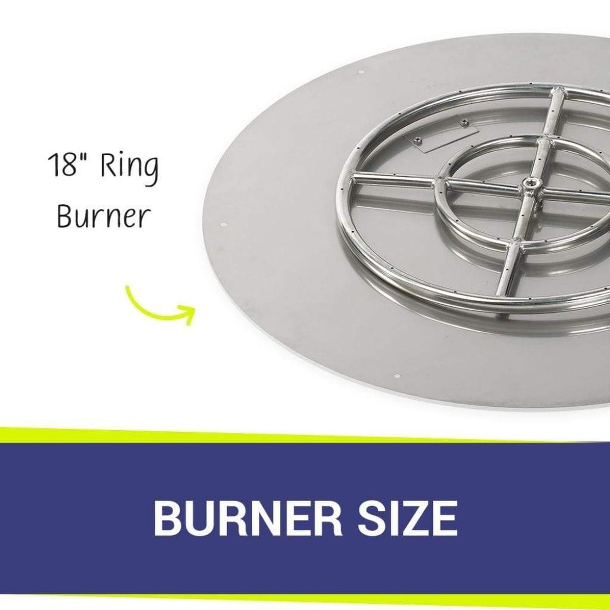 We also include an 18" Ring Burn so there is no need to buy any additional parts. The 18" Fire Ring is rate and 147,000 Btu and is made from 304 stainless steel. Our high quality 18" fire pit ring burner is designed to delight all onlookers with its amazing flame. The double concentric ring design increases the overall diameter of the burner, allowing for a truly realistic and evenly distributed flame. Furthermore, the burner holes have been drilled, not punched, which means no whistling noises are produced. Our burner also comes with a convenient ½ inch gas inlet for easy connection to a natural or propane gas supply.