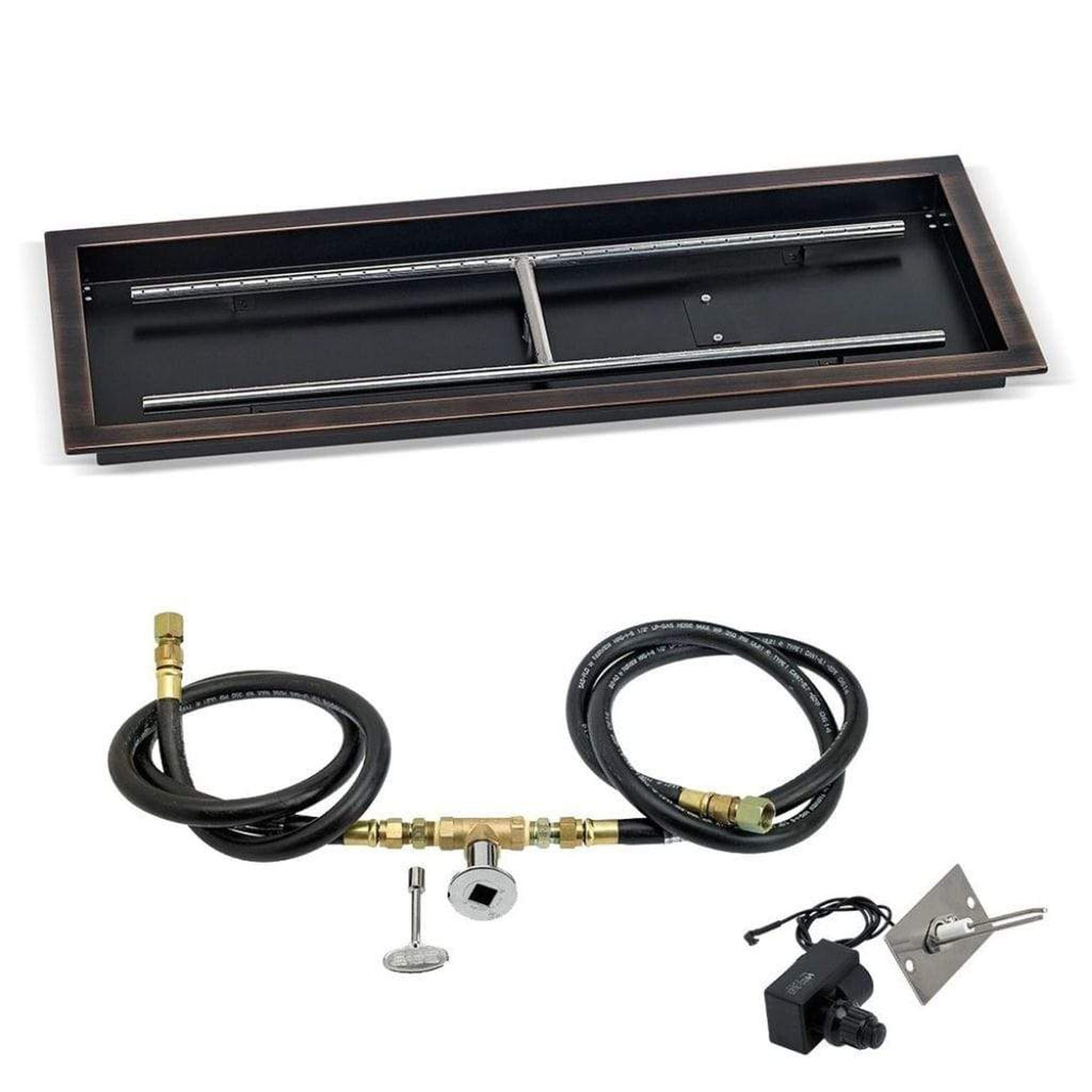 American Fireglass 48" x 14" Rectangular Oil Rubbed Bronze Drop-In Pan with Spark Ignition Kit - Natural Gas