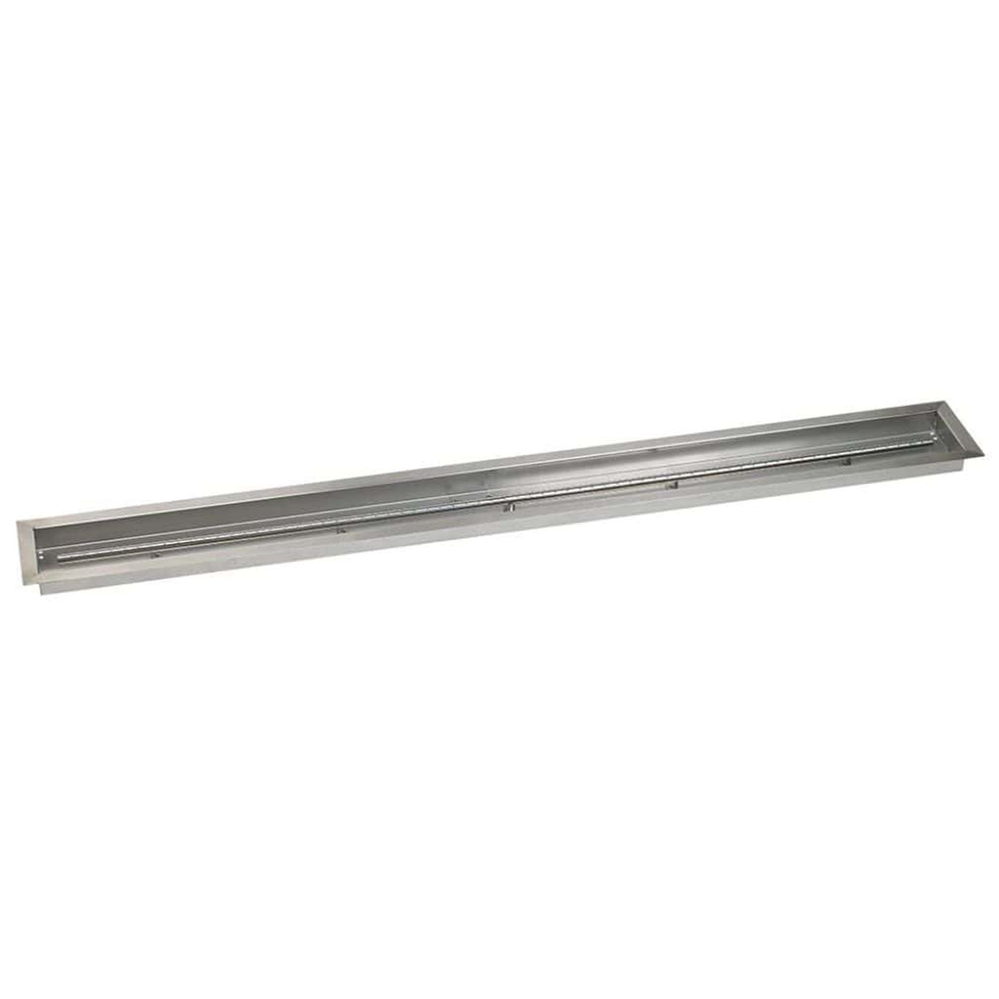 72" x 6" Linear Channel Drop-in Burner Pan w/ Built-in T-Burner - Our 72" x 6" linear drop-in burner pan comes with a convenient 'lip' so it can be installed into your DIY fire pit and easily removed after use. These burner pans greatly reduce the amount of fire glass your customers will need to fill their fire pit by creating a false bottom which gives the illusion that the fire pit is full, whereas only the top part of it is. All our linear drop-in burner pans are made of 304 stainless steel, which means they are very durable and can withstand extreme heat as well as harsh weather without sustaining any damage or rust. Each comes with a built-in T-burner, 1/2 inch gas inlet and drilled weep holes to prevent water accumulation.