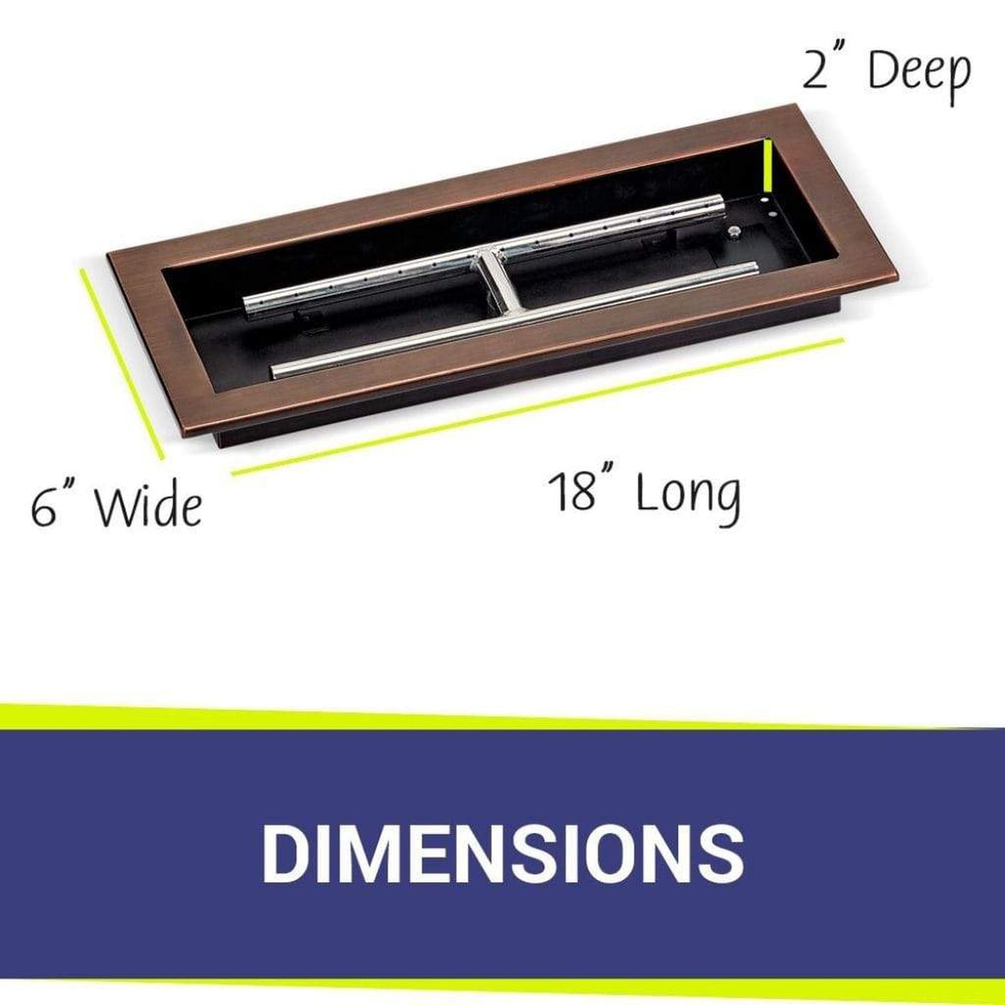 Our 18" x 6" rectangular drop-in burner pans come with a convenient lip so that they can easily be inserted into your customers' fire pit and then removed after use. Fire pit pans give fire pits a false bottom which significantly reduces the amount of fire glass your customers will need for their display because the pans create the illusion that the entire fire pit is full of fire glass, whereas only the top portion of it is. Your customers get an amazing fire display with minimal fire glass!
