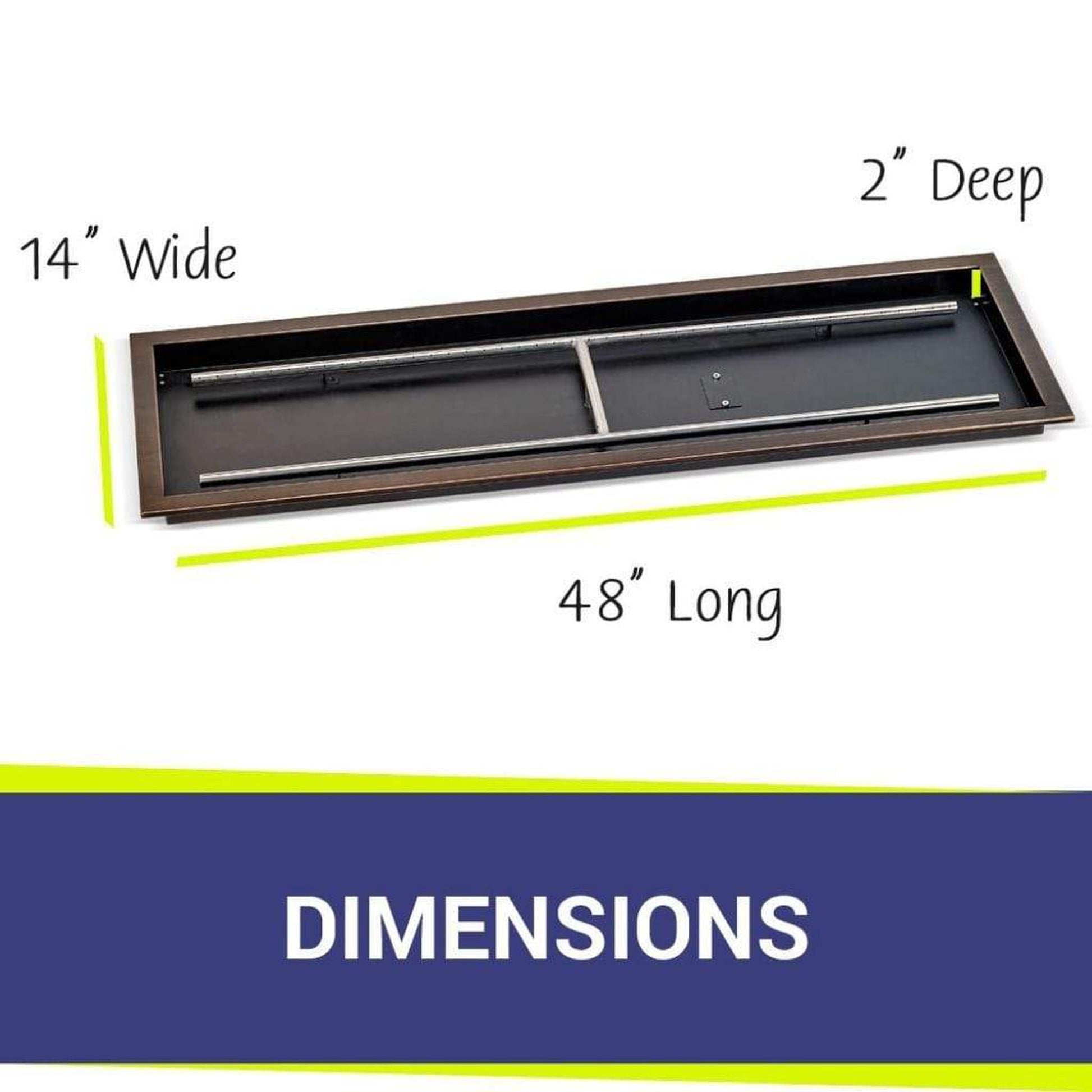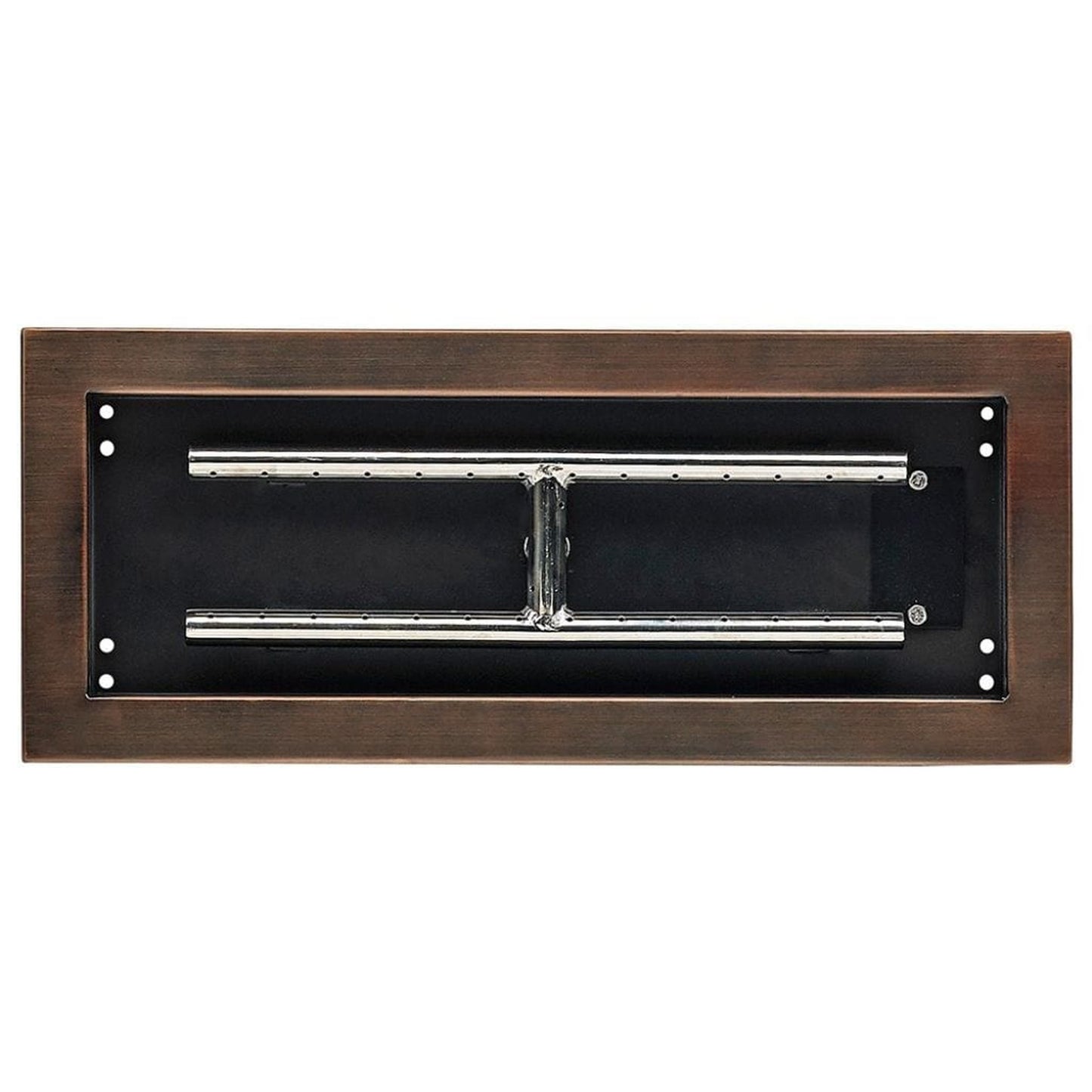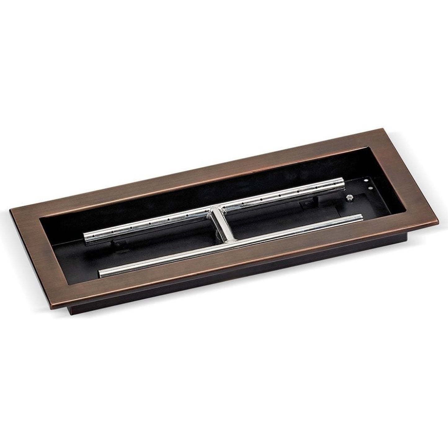 - Description: Rectangular stainless steel fire pit burner pan with a 1-1/4" flange and built-in h-burner