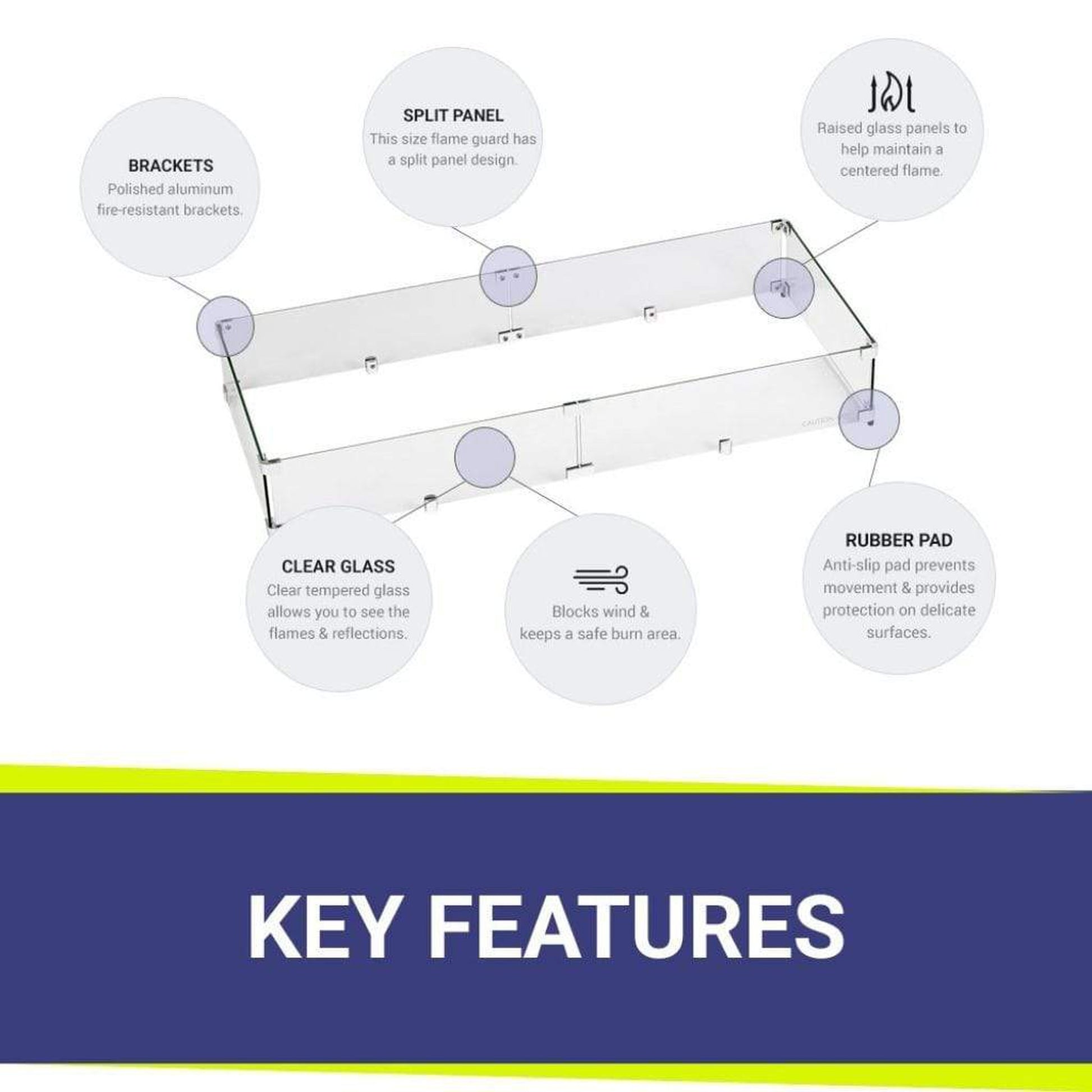 Rectangular Glass Flame Guard for 36" x 12" Drop-In Fire Pit Pan