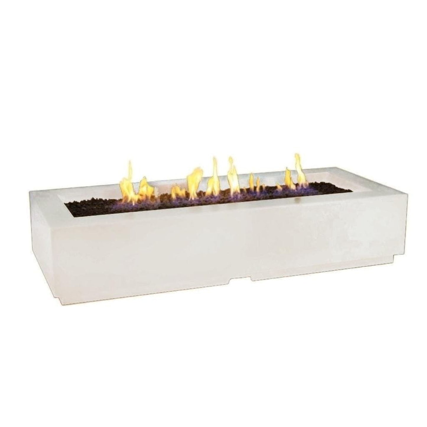 American Fyre Designs 72" Louvre Long Rectangle Fire Pit add style and design to the classic outdoor firepit. The Louvre Long Rectangle Fire Pit has a smooth concrete exterior and smooth rim around the top. Made from glass fiber reinforced concrete (GFRC). Available in four colors - White Aspen, Cafe Blanco, Black Lava, and Smoke and three Antique Finishes - Travertine, Dark Basalt, and Light Basalt, choose a color that matches or complements your outdoor decor.