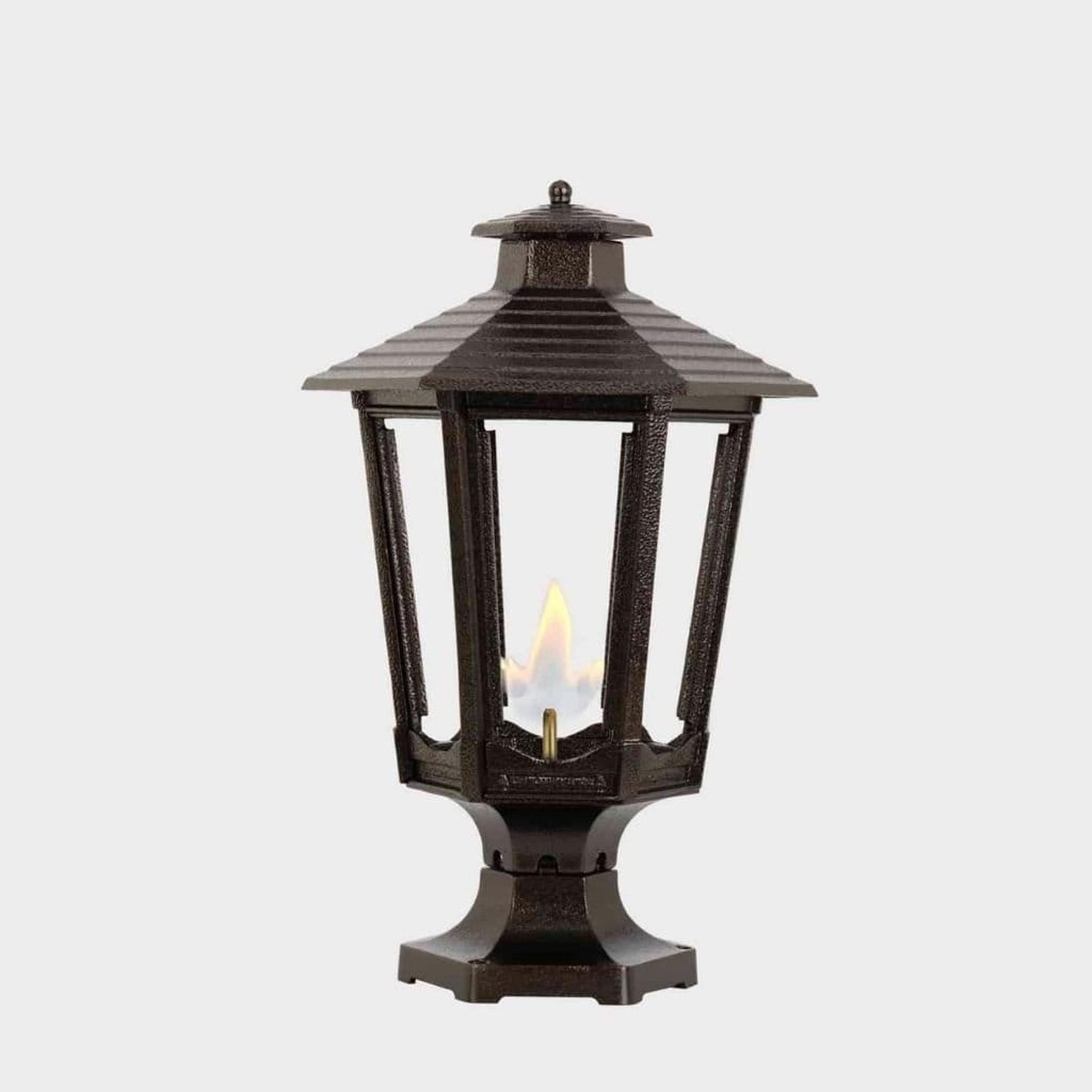 - Open Flame Gas Lamps: Open Flame illumination is for the discerning homeowner looking to infuse an outdoor setting with the warm, flickering light of an open gas flame. American Gas Lamp Works’ open flame gas lamps provide a dramatic ambiance to outdoor settings, entrances, and walkways. We recommend the following routine maintenance for your open flame lamp, best performed by a professional service person: