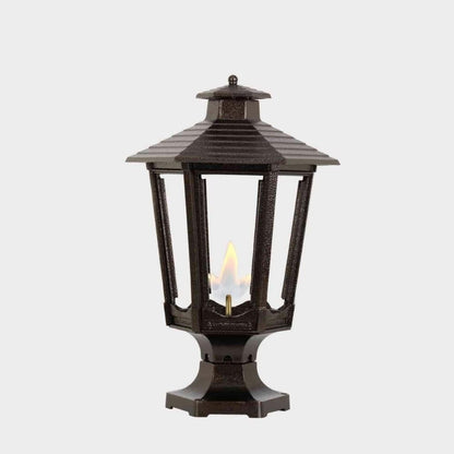 Can open flame be used with liquid propane (LP) gas?Our open flame gas lamps are only available when fueled by natural gas; they are not compatible with liquid propane. The only option for LP gas is our gas mantle burner, which is similar to what you see in a Coleman camping lantern. It uses mesh mantles to provide a solid, white light, like a light bulb. Mantle burners are intended to burn 24/7 and do not flicker like a flame. |