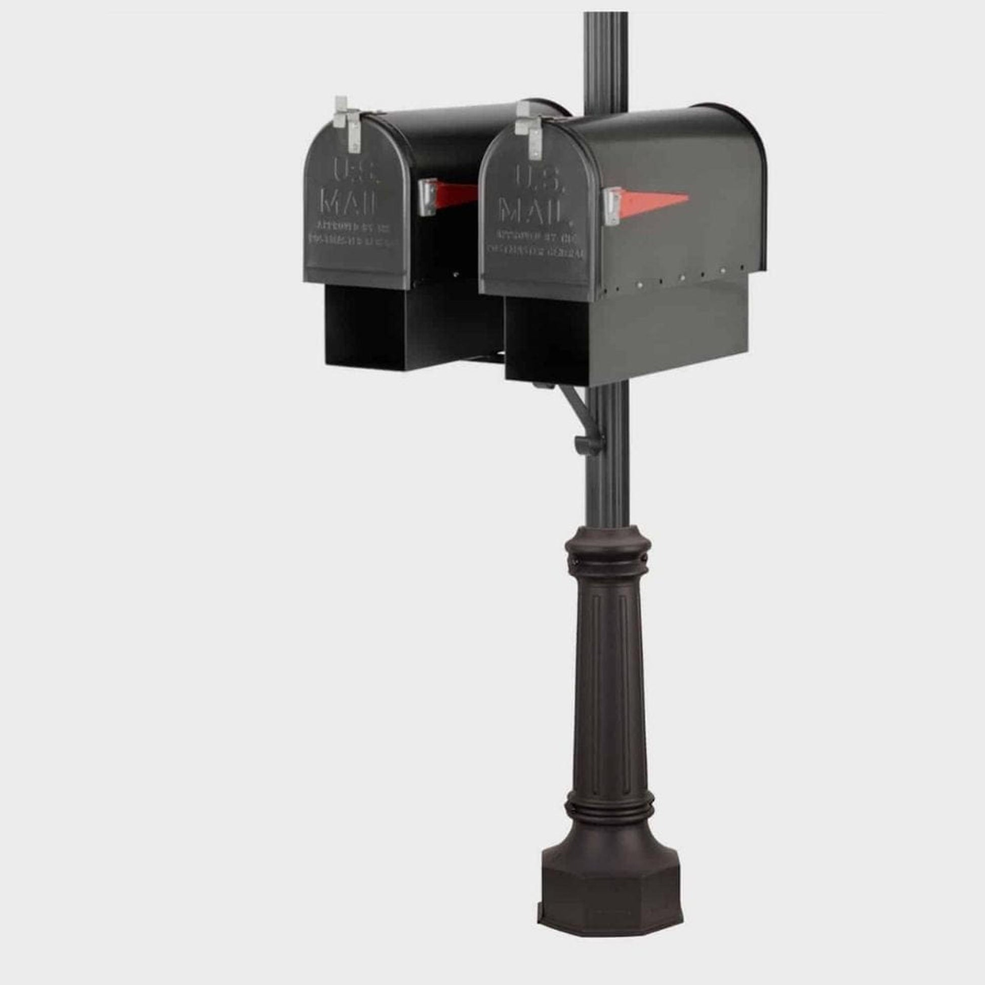 All traditional mailboxes require burial installation and include a 3"OD smooth or fluted post, cast aluminum decorative pedestal base, and powder coat finish. Available with one or two mailboxes/newspaper holders.