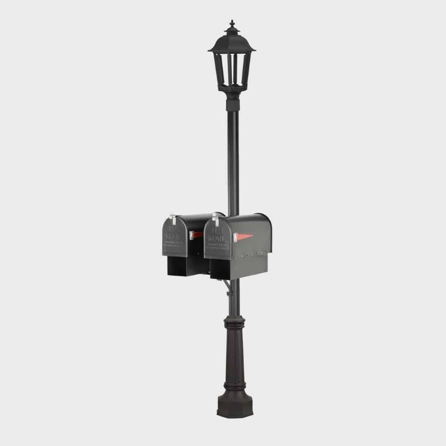 All traditional mailboxes require burial installation and include a 3"OD smooth or fluted post, cast aluminum decorative pedestal base, and powder coat finish. Available with one or two mailboxes/newspaper holders. Can be used in combination with any of our post-mount gas or electric lamps or capped off to be used independently. Lamps are sold separately.