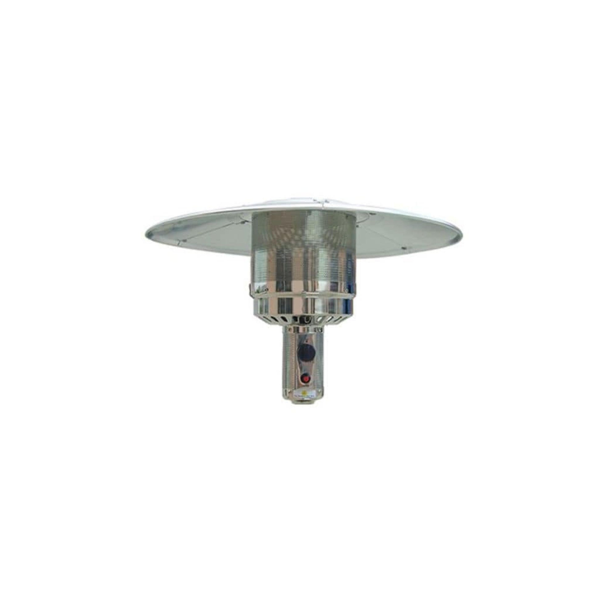 The HLDS01-SSHGT Tall Stainless Steel / Hammered Bronze Patio Heater with Table projects 48,000 BTUs of heat providing warmth while adding ambiance to any outdoor area. Steel construction ensures a durable, weather-resistant, functional unit that would be a great addition to any patio, deck, or outdoor setting. The HLDS01-SSHGT features an emitter/burner unit made of heavy-duty steel, built-in wheels for easy portability/mobility, and an adjustable table that be removed completely. This heater is CSA Approved and includes a burner cover and regulator.