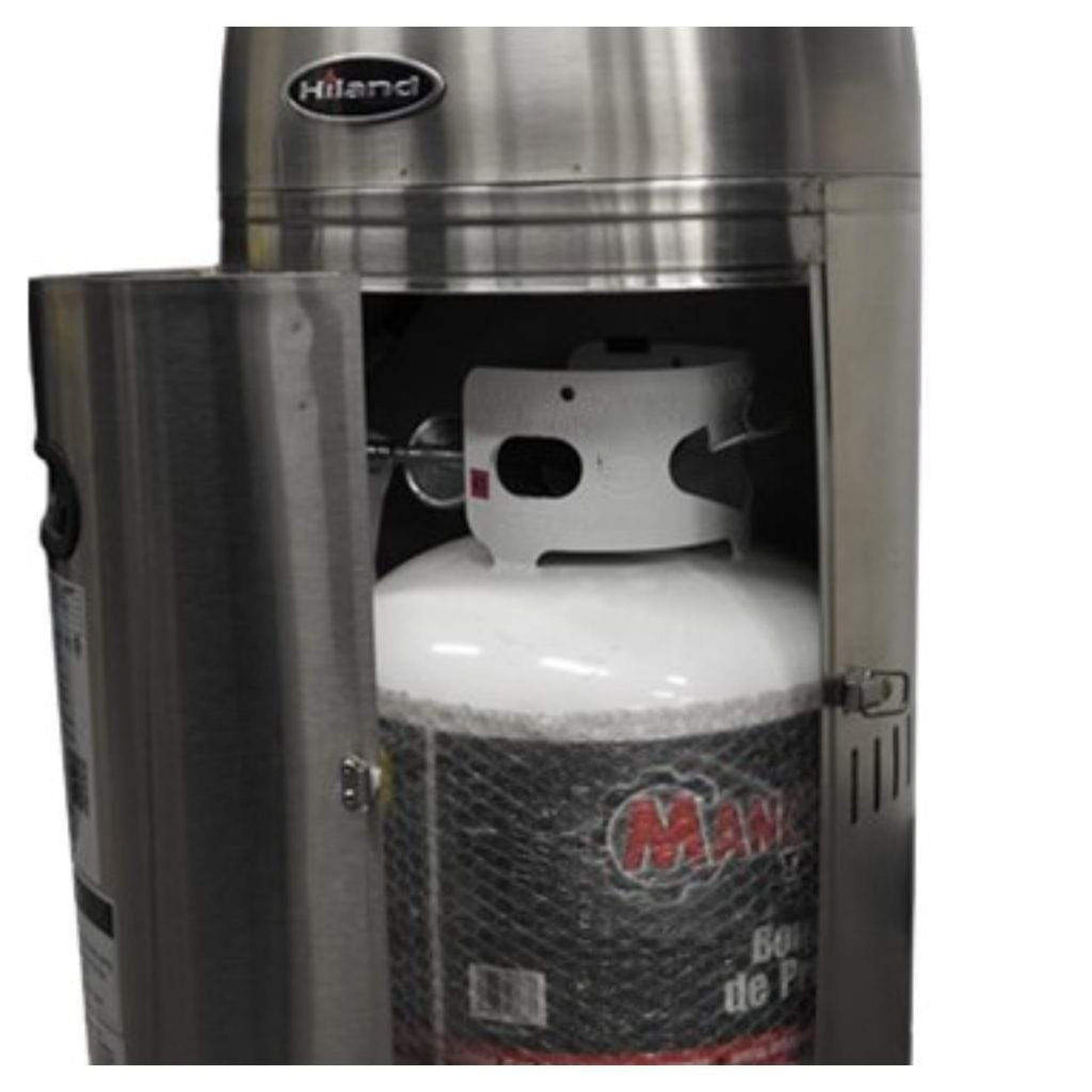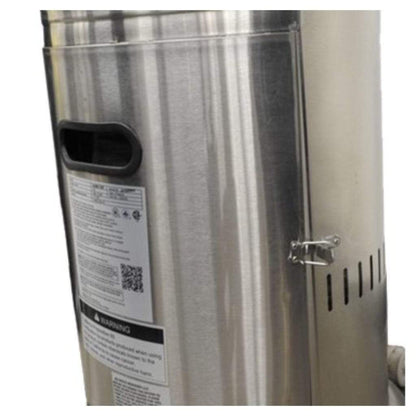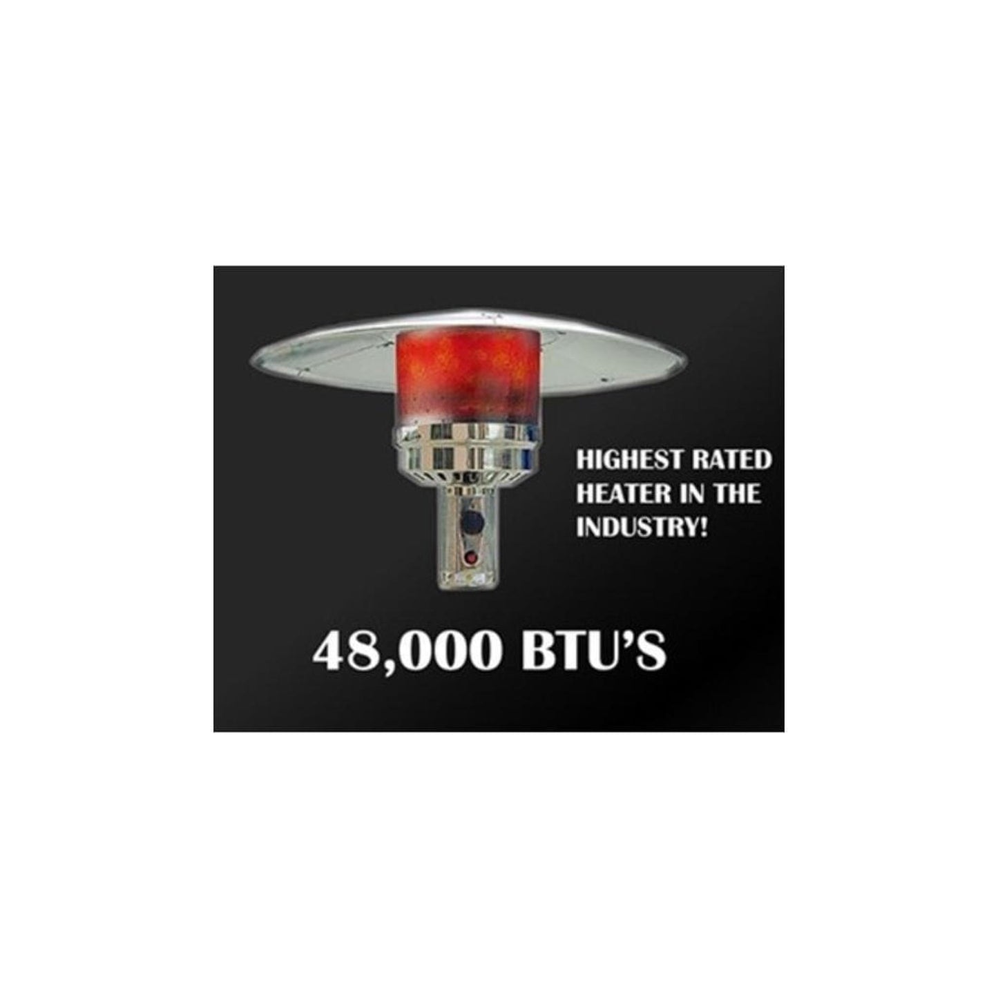 Patio heaters offer a great heat source for outdoor environments including patios, bistros, and other outdoor seating areas. Patio heaters are ideal for bars and restaurants, offering a comfortable outdoor area even in cold seasons. Hooded tops protect heaters from rain, snow, and other hazardous weather conditions. The outdoor heater is made with easy-to-clean 202-grade stainless steel. Patio heater uses 5,000-13,000 watts with up to 48,000 BTU's heat and a heat range up to 15'. Includes a height-adjustable table for convenient outdoor use for bars, bistros, and other outdoor restaurant areas. Outdoor propane patio heater includes regulator and safety anti-tilt switch.