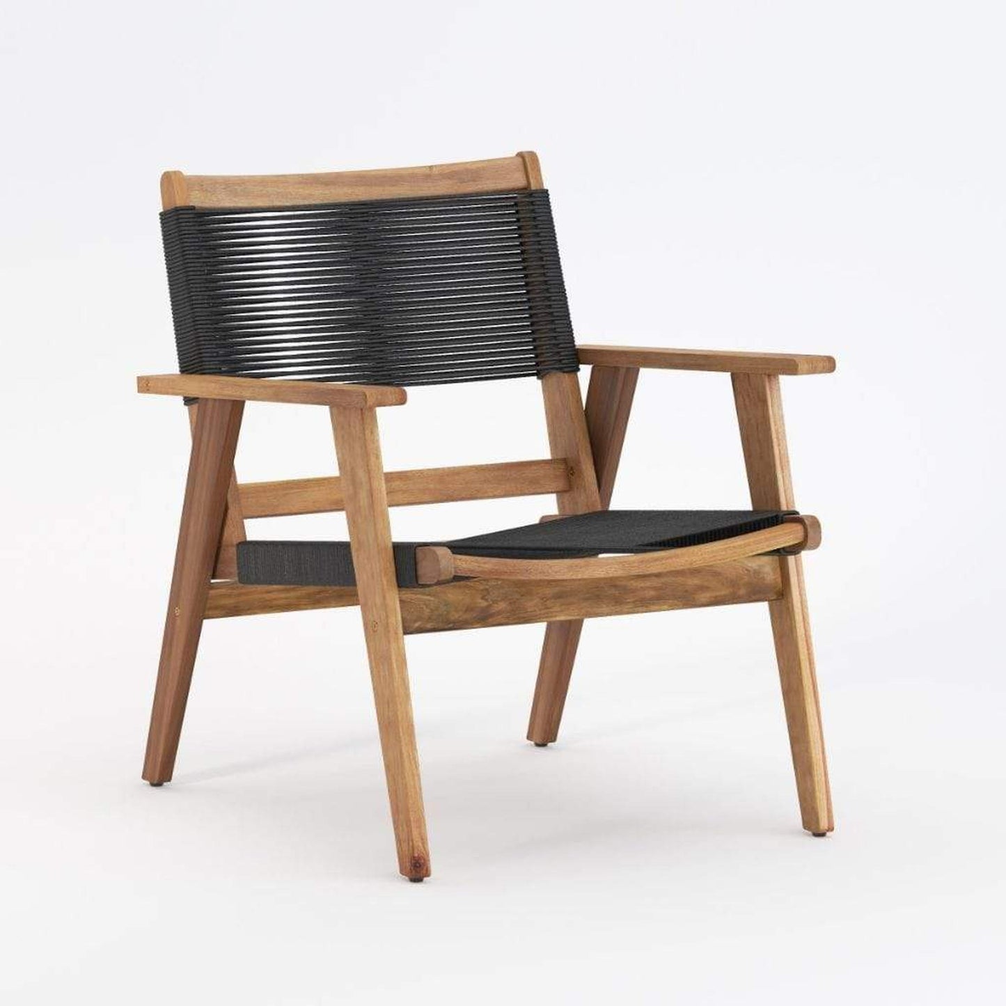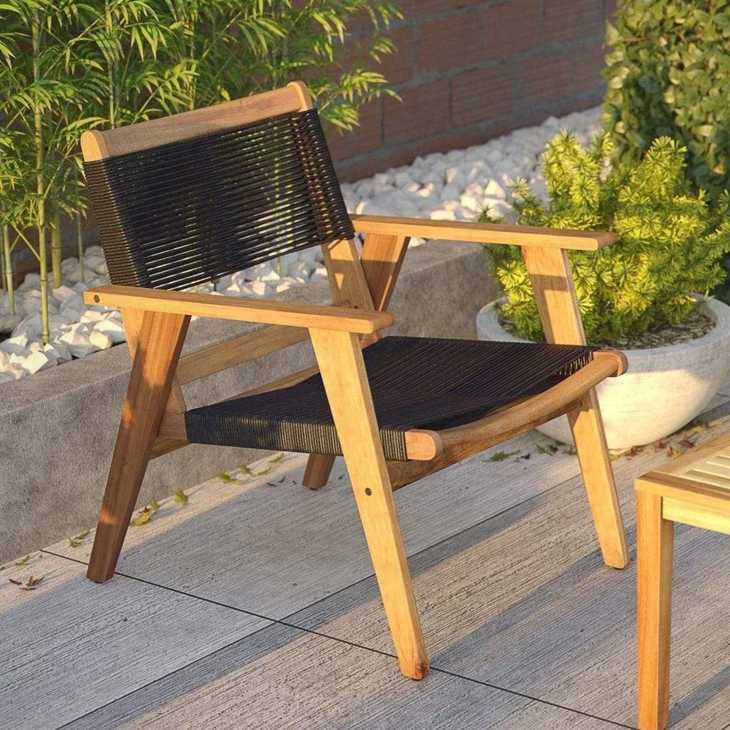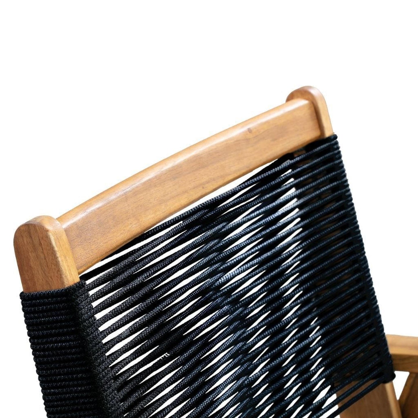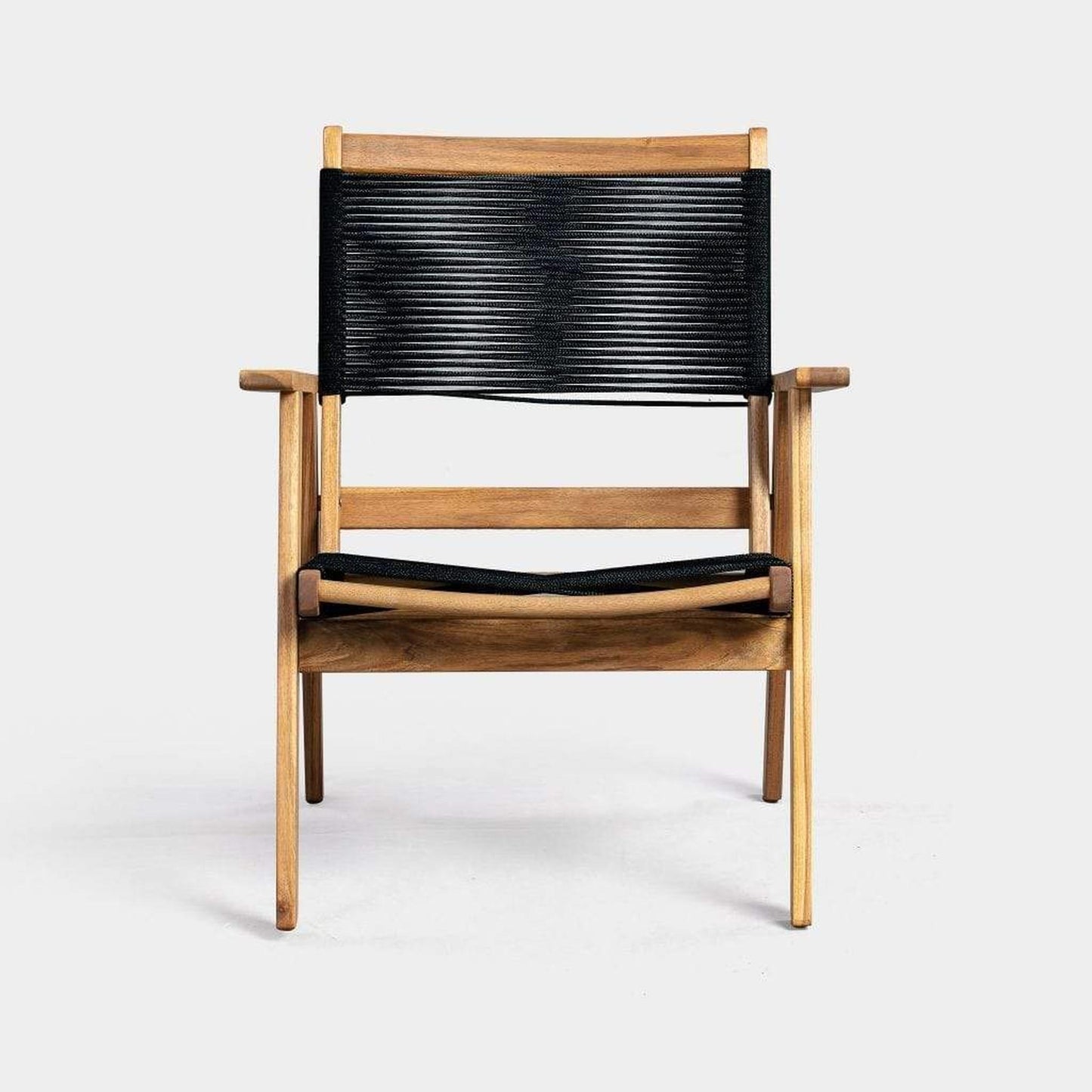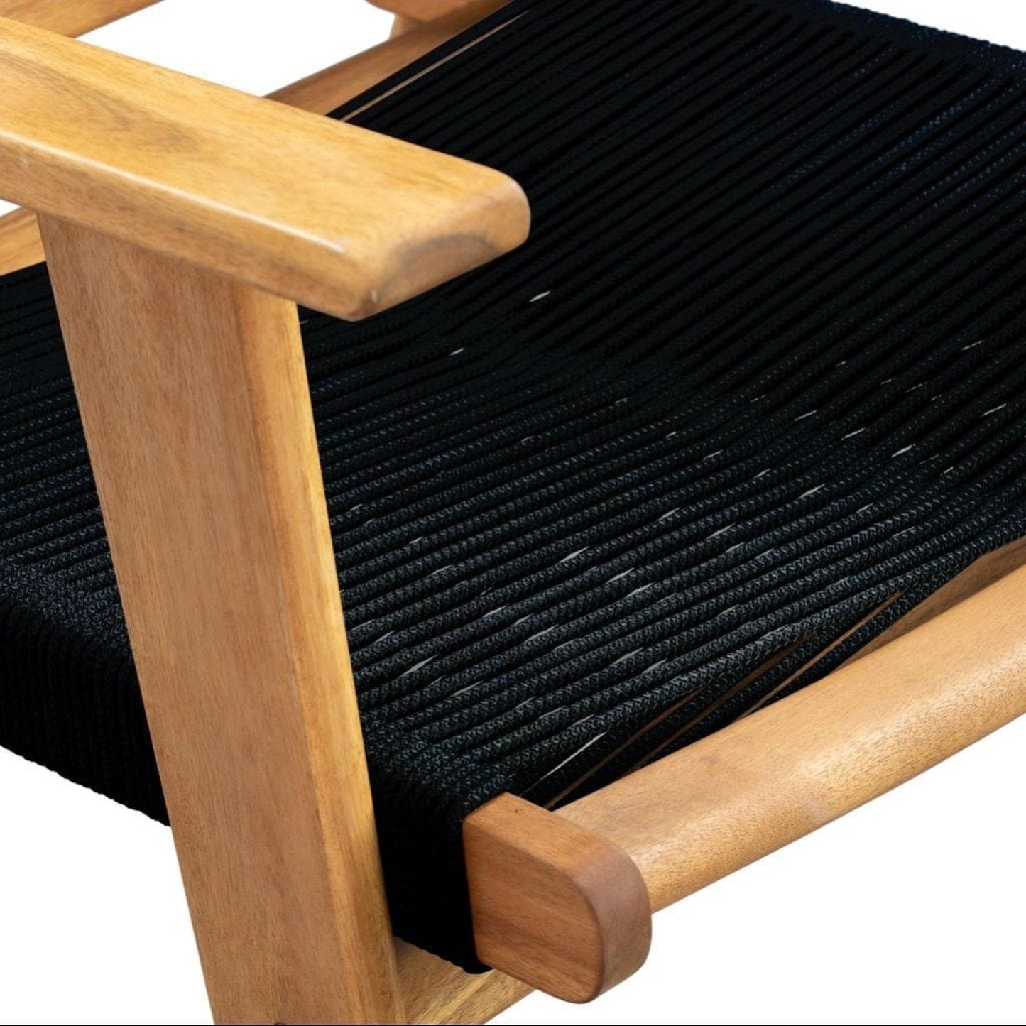The Kingsmen Armchair by Balkene Home is part of our midcentury-modern Scandinavian-inspired collection of indoor/outdoor furniture, and pairs perfectly with the Kingsmen Armchair, Loveseat Bench, and Coffee Table to create a versatile seating arrangement. In solid acacia, featuring clean lines and modern black cordage suspension seat.