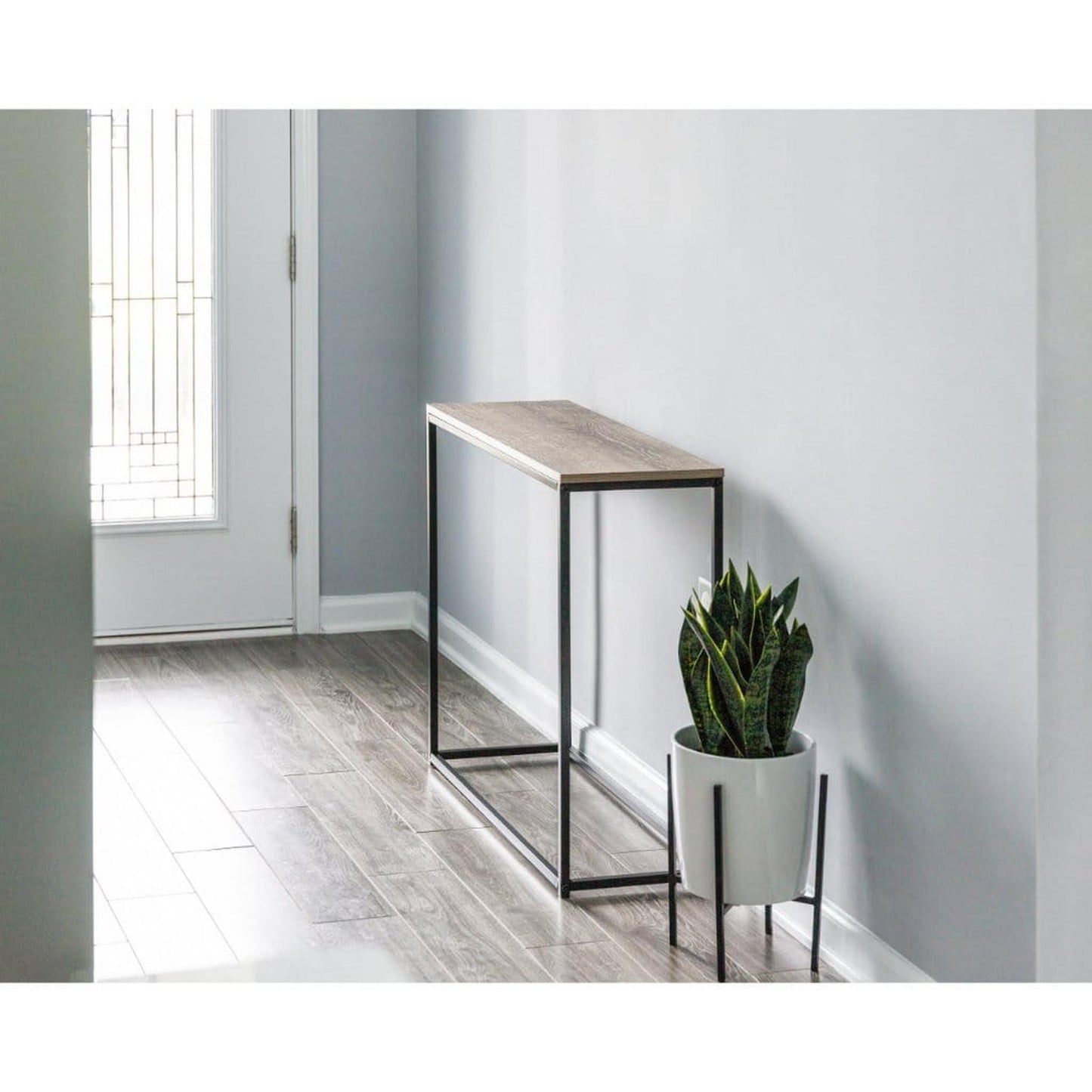 The Tribeca Console Table is a perfect accent for your entryways and entertaining spaces, and slim enough for hallway and foyer areas. Enjoy the organic appeal of the wood-look surface and slim-but-sturdy frame. Curate a display of trinkets, place a table lamp to illuminate the room, or use it as your staging area with a bowl for keys and necessities. Stash a basket or magazine rack below for easy and chic storage.