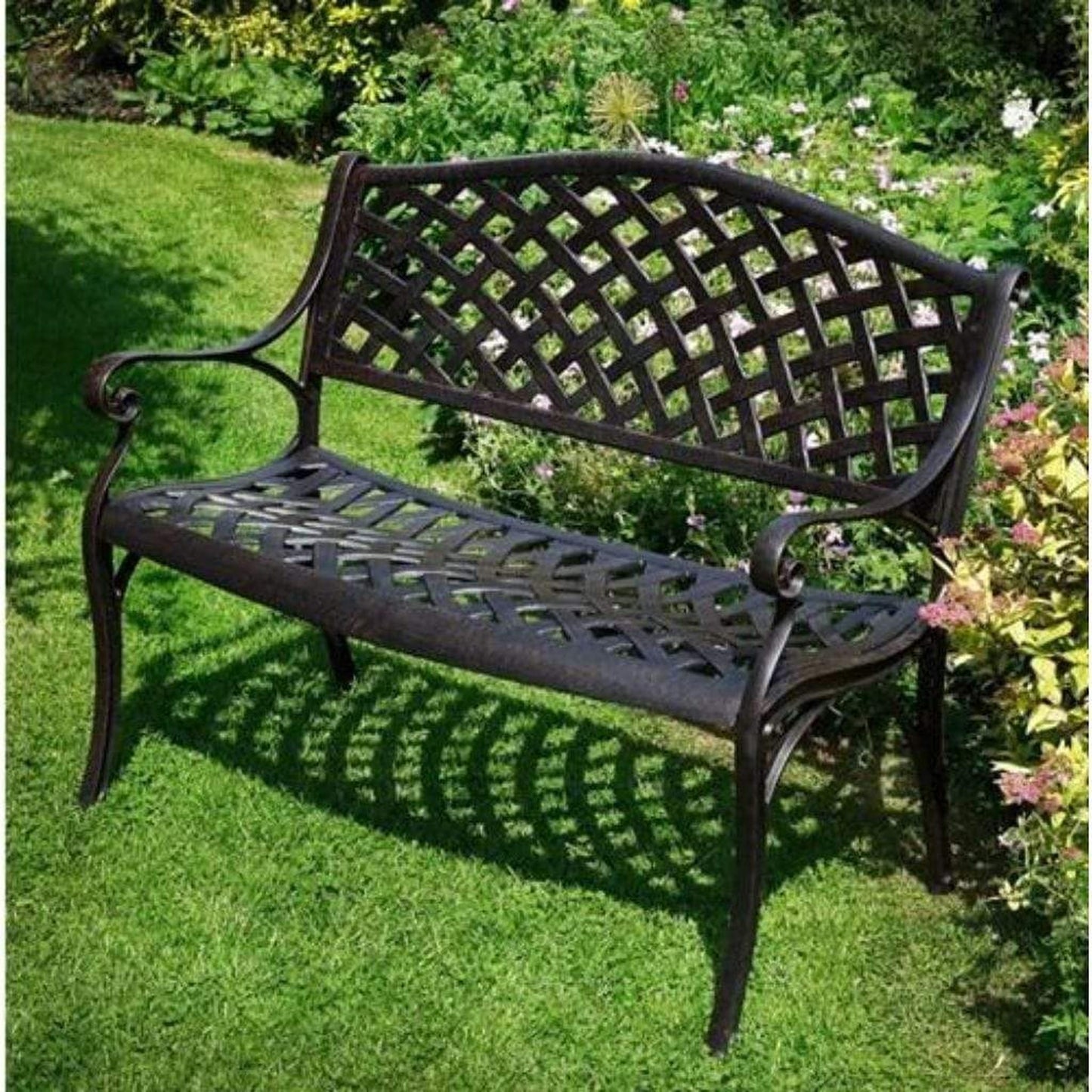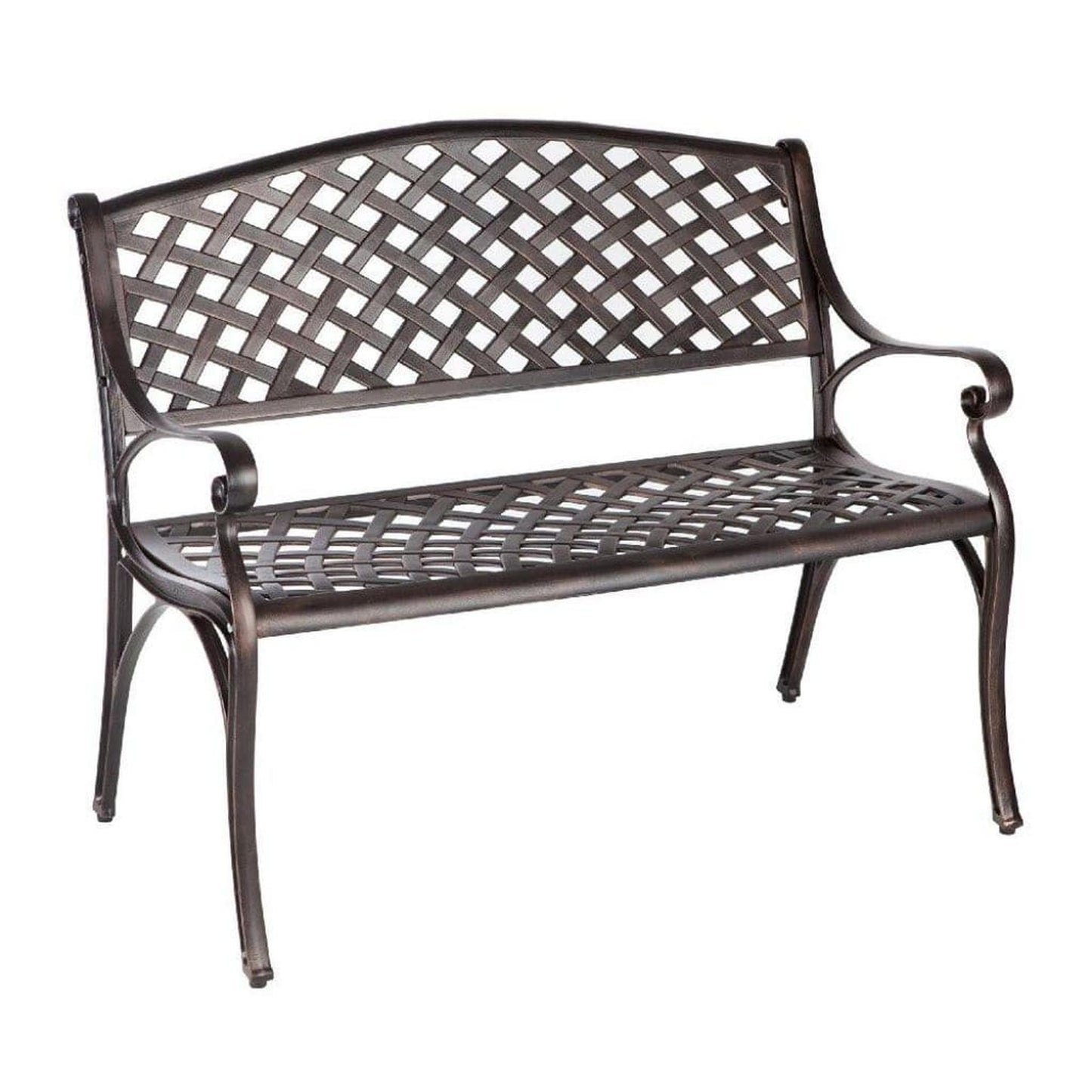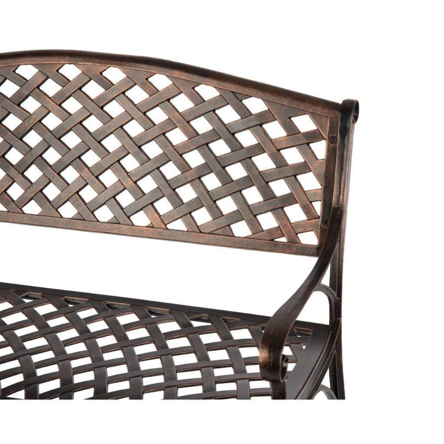Enjoy the classic beauty of cast iron but the maintenance-free experience of durable solid aluminum. The elegant Antique Bronze Patio Bench is constructed of cast aluminum in our unique antique bronze finish. This lightweight yet sturdy bench is perfect for a relaxing pause in the garden or your backyard patio. The attractive basketweave design with antique bronze finish is the perfect year-round accent for any patio or garden setting.