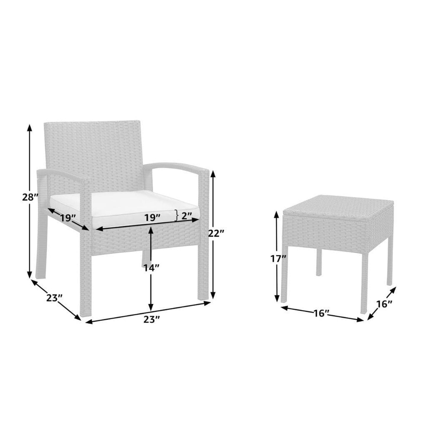 Assembled Dimensions: Chair (2): 23"L x 23"W x 28"H; Weight: 15 lbs.