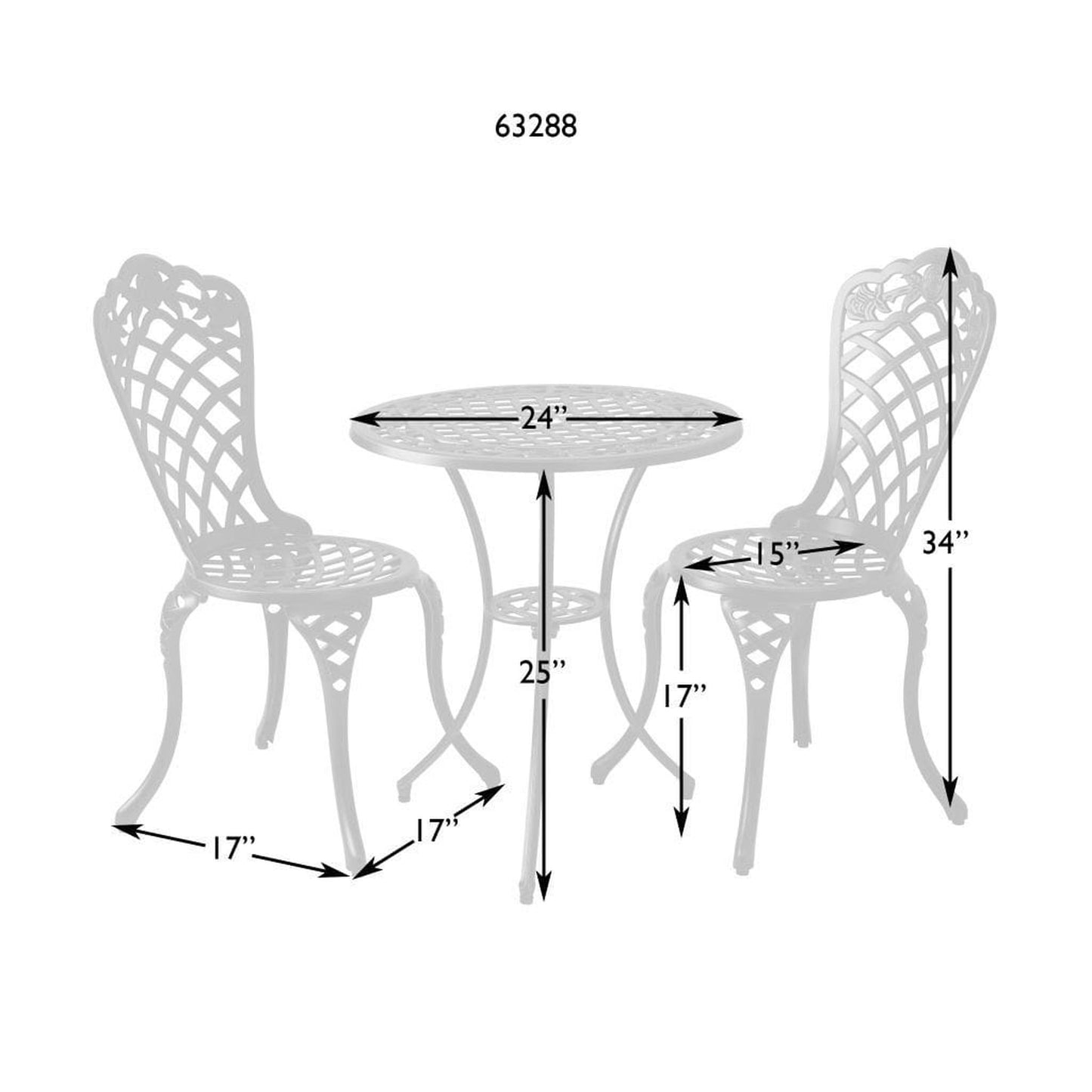 Chair: 17"L x 17"W x 34"H; Seat: 17" H x 15" Dia.