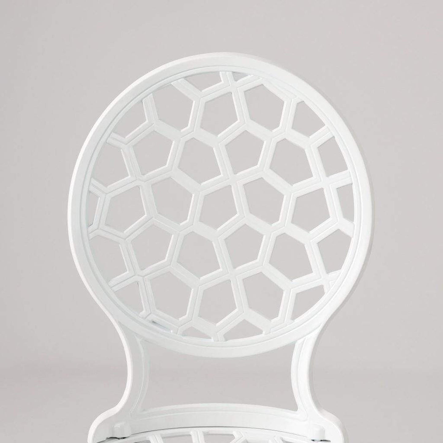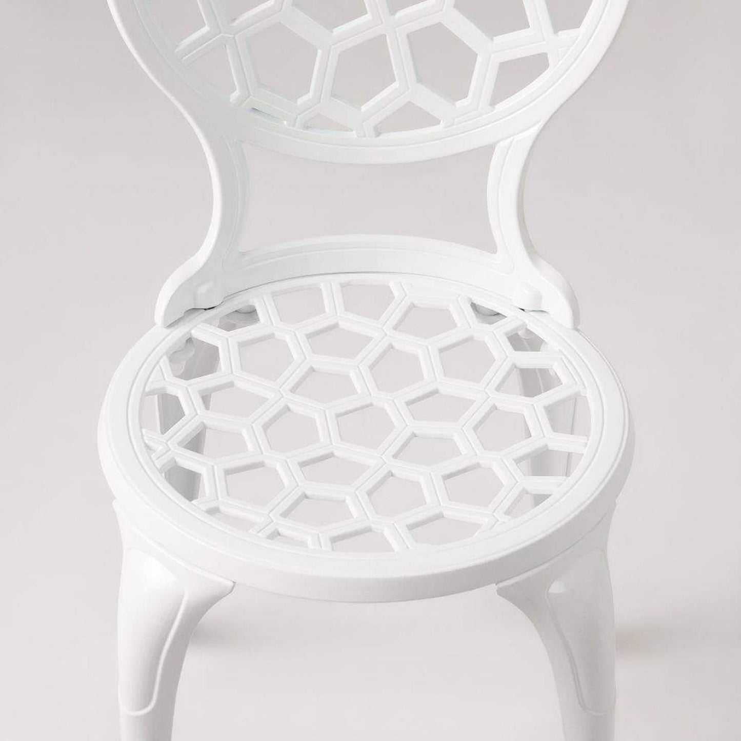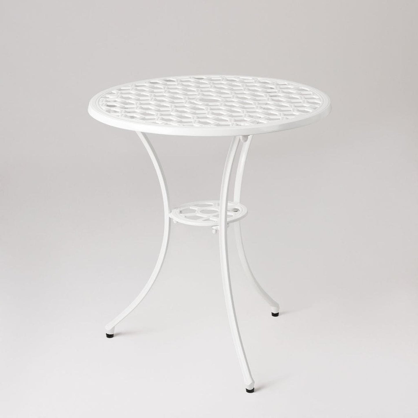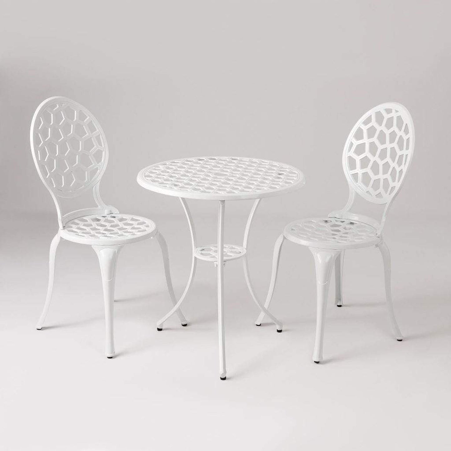 Enjoy the classic look of cast iron with the maintenance-free experience of durable solid aluminum. The cast-iron style Vashon 3-piece Bistro Set includes two chairs and a table in durable cast aluminum. This lightweight yet substantial bistro set is perfect for alfresco breakfasts or an afternoon tea for two. The attractive gloss white finish is the perfect accent for any patio. Our bistro set can be used year-round and provides a maintenance-free outdoor seating experience.