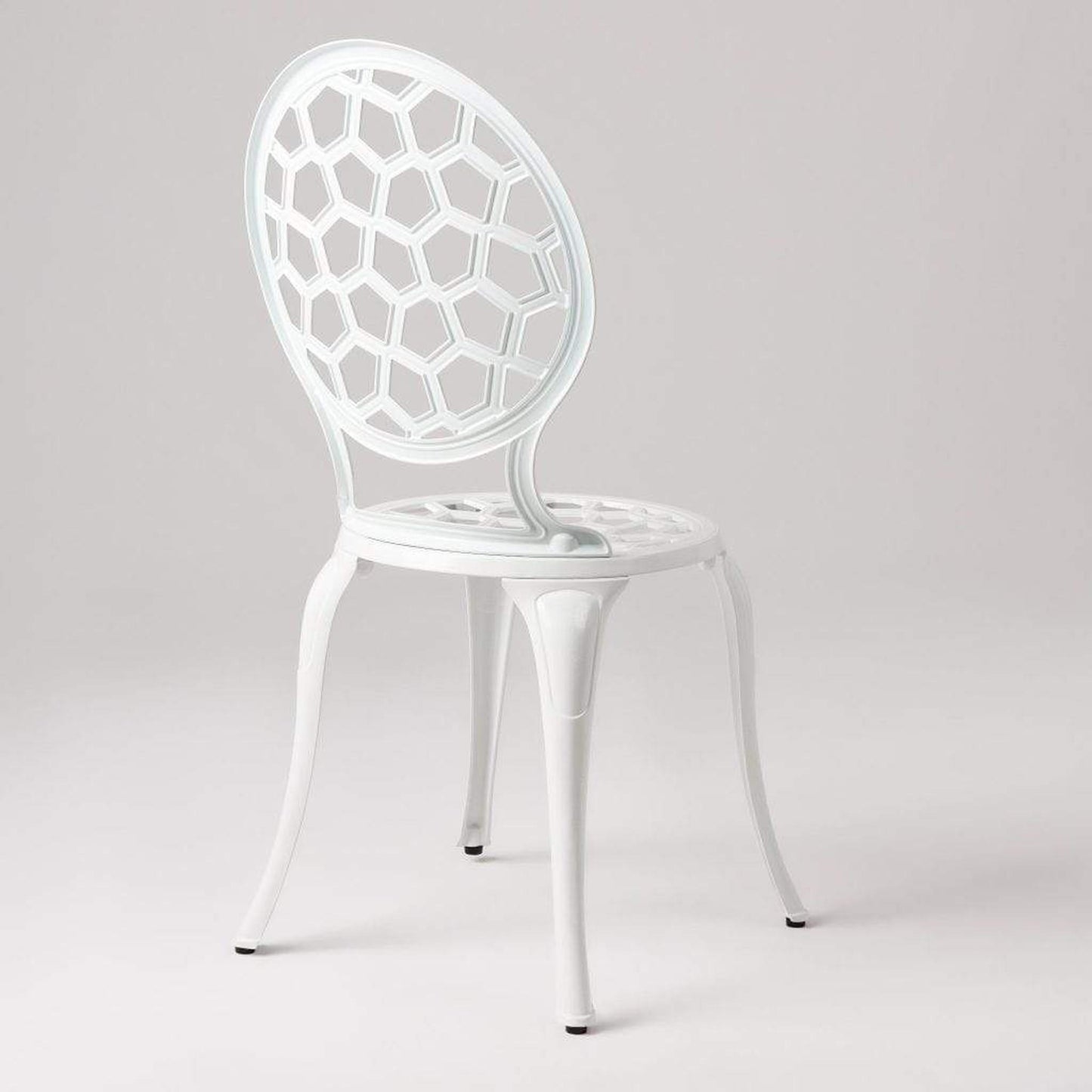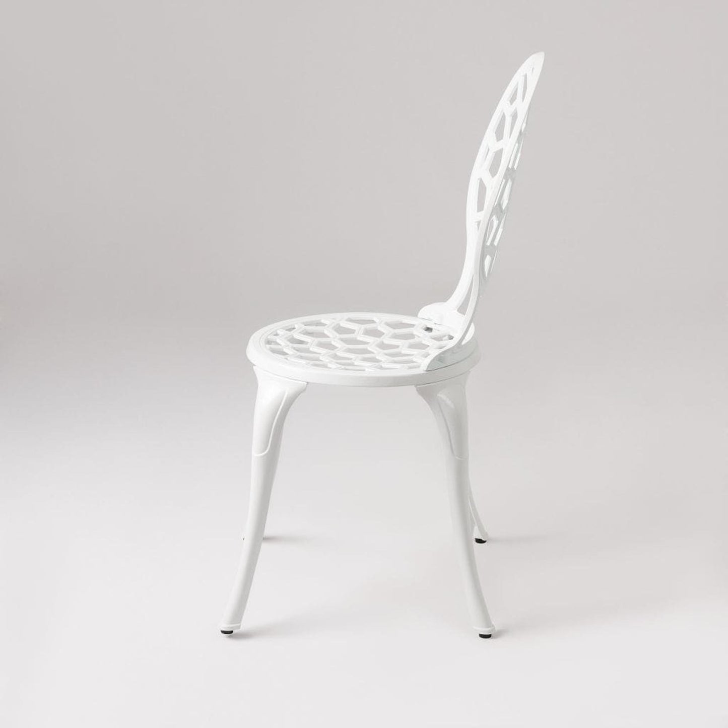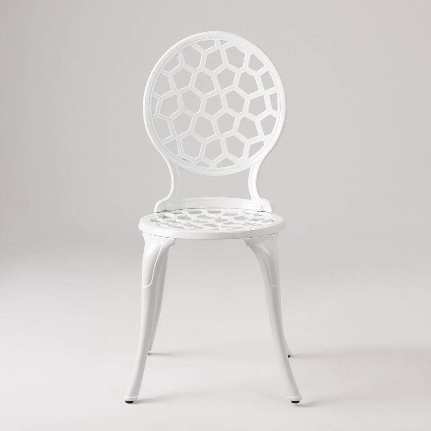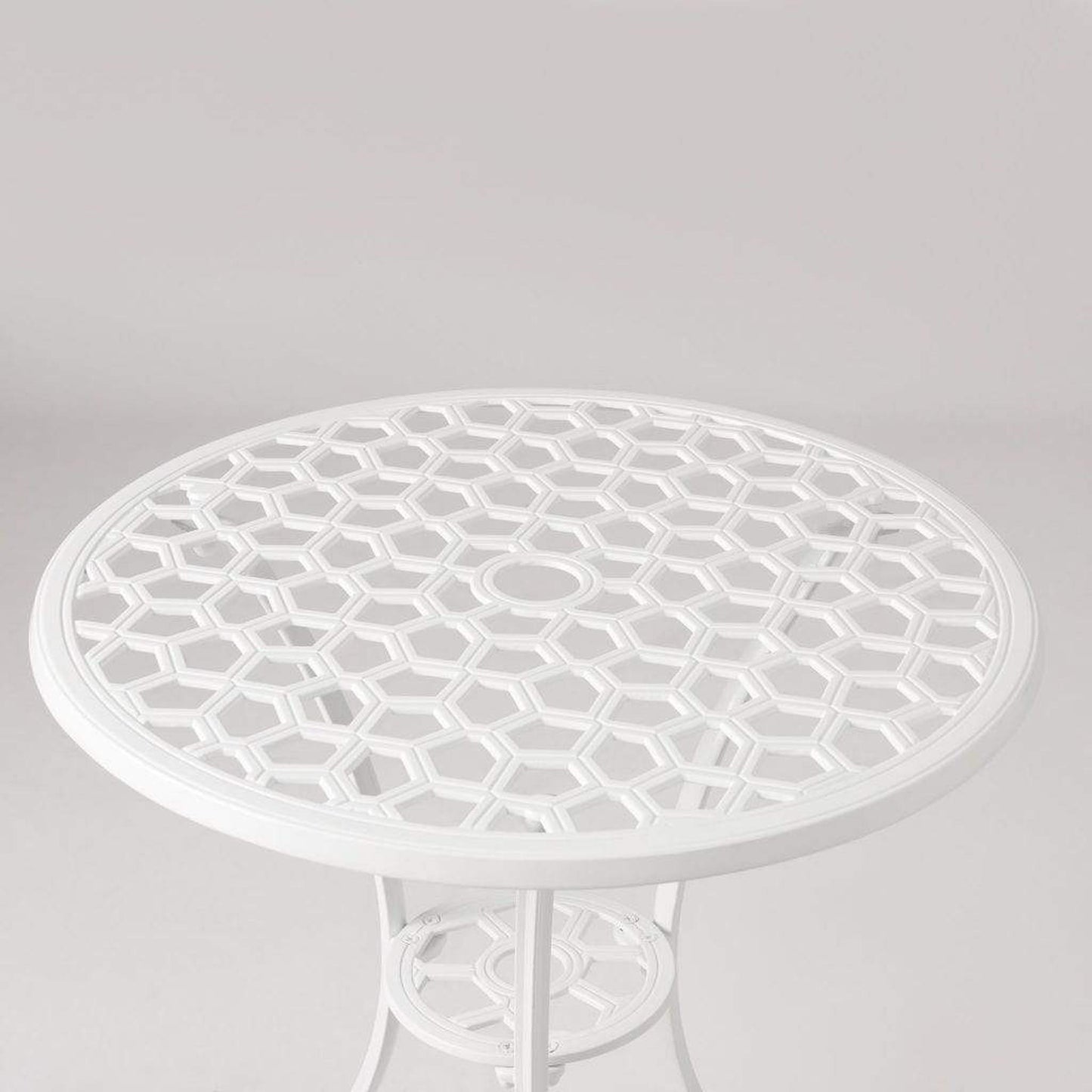 Enjoy the classic look of cast iron with the maintenance-free experience of durable solid aluminum. The cast-iron style Vashon 3-piece Bistro Set includes two chairs and a table in durable cast aluminum. This lightweight yet substantial bistro set is perfect for alfresco breakfasts or an afternoon tea for two. The attractive gloss white finish is the perfect accent for any patio. Our bistro set can be used year-round and provides a maintenance-free outdoor seating experience.
