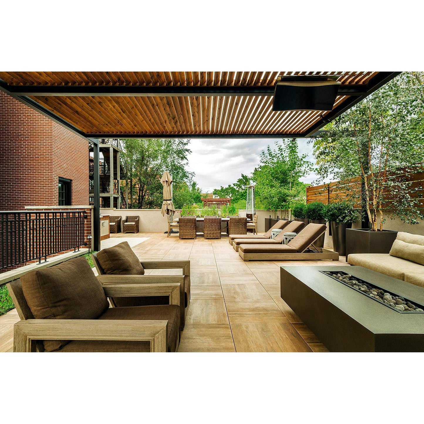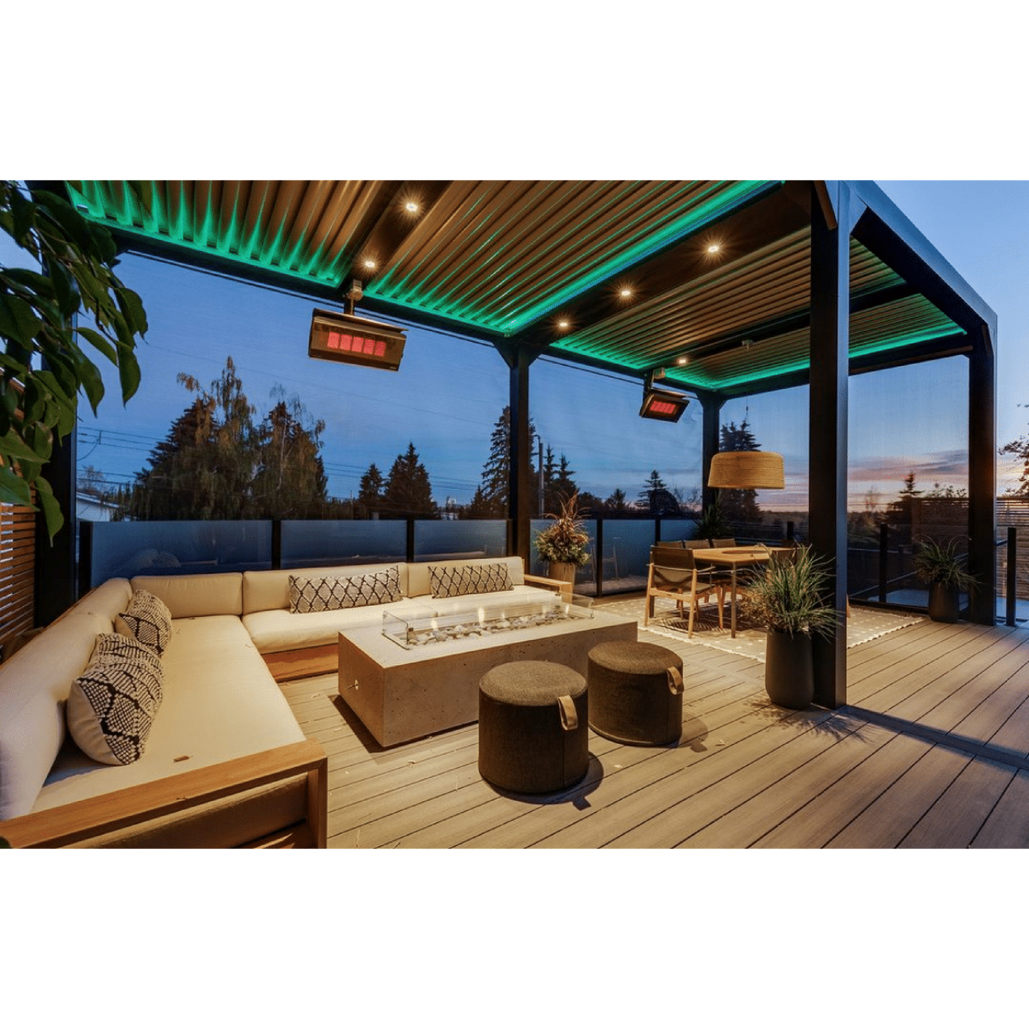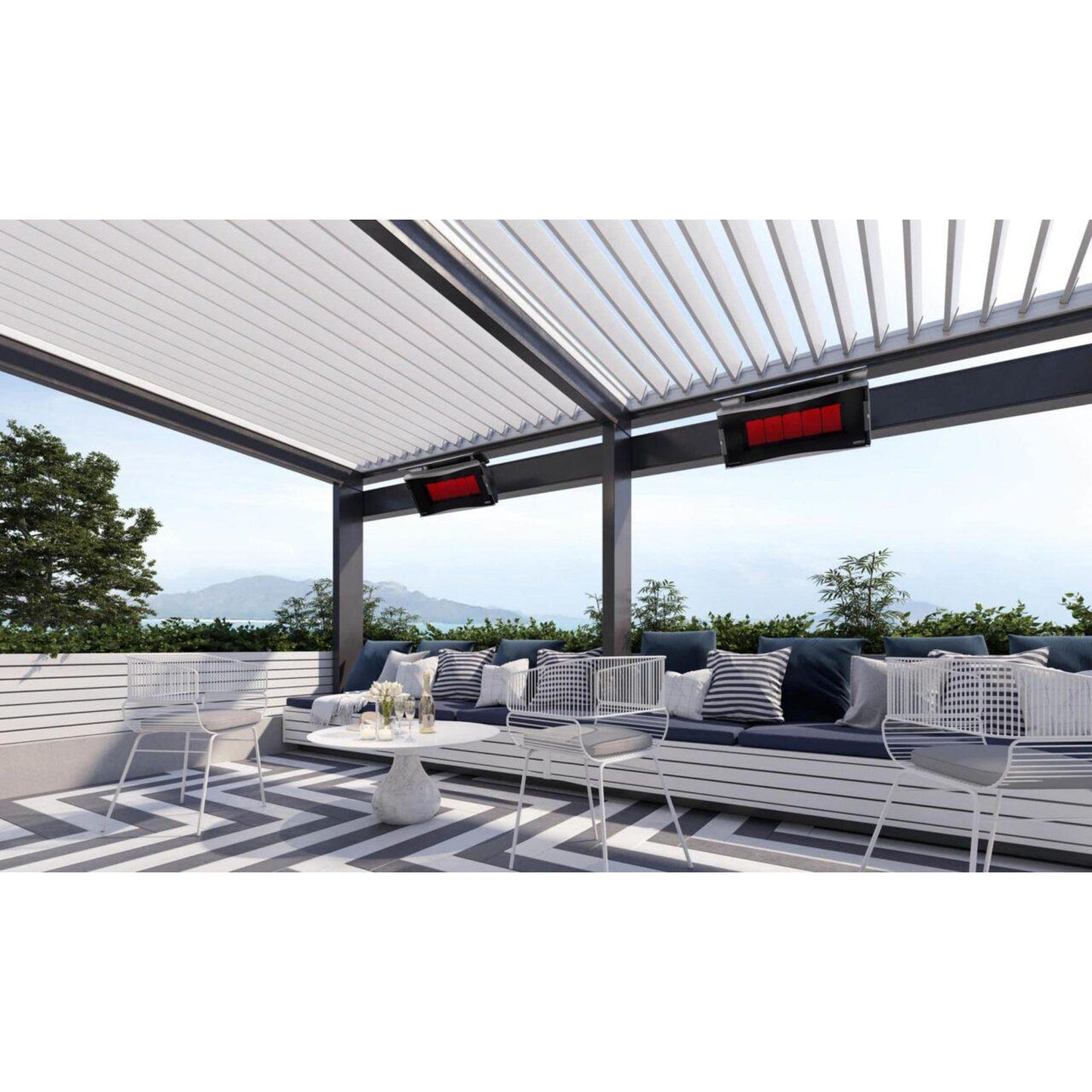 Add style and warmth to your patio, with Bromic’s Platinum Gas range. This powerful heater combines elegant design with industry-leading technology. With its signature ceramic fascia in a sleek black finish, the Bromic Platinum Gas will not only look great on your wall or ceiling, but will also quickly project radiant heat deep into your outdoor area (up to 215ft2) while adding an extra layer of comfort with its soft red glow. The Platinum Gas series successfully overcomes winds of up to 12mph, keeping you and your guests warm in any condition.