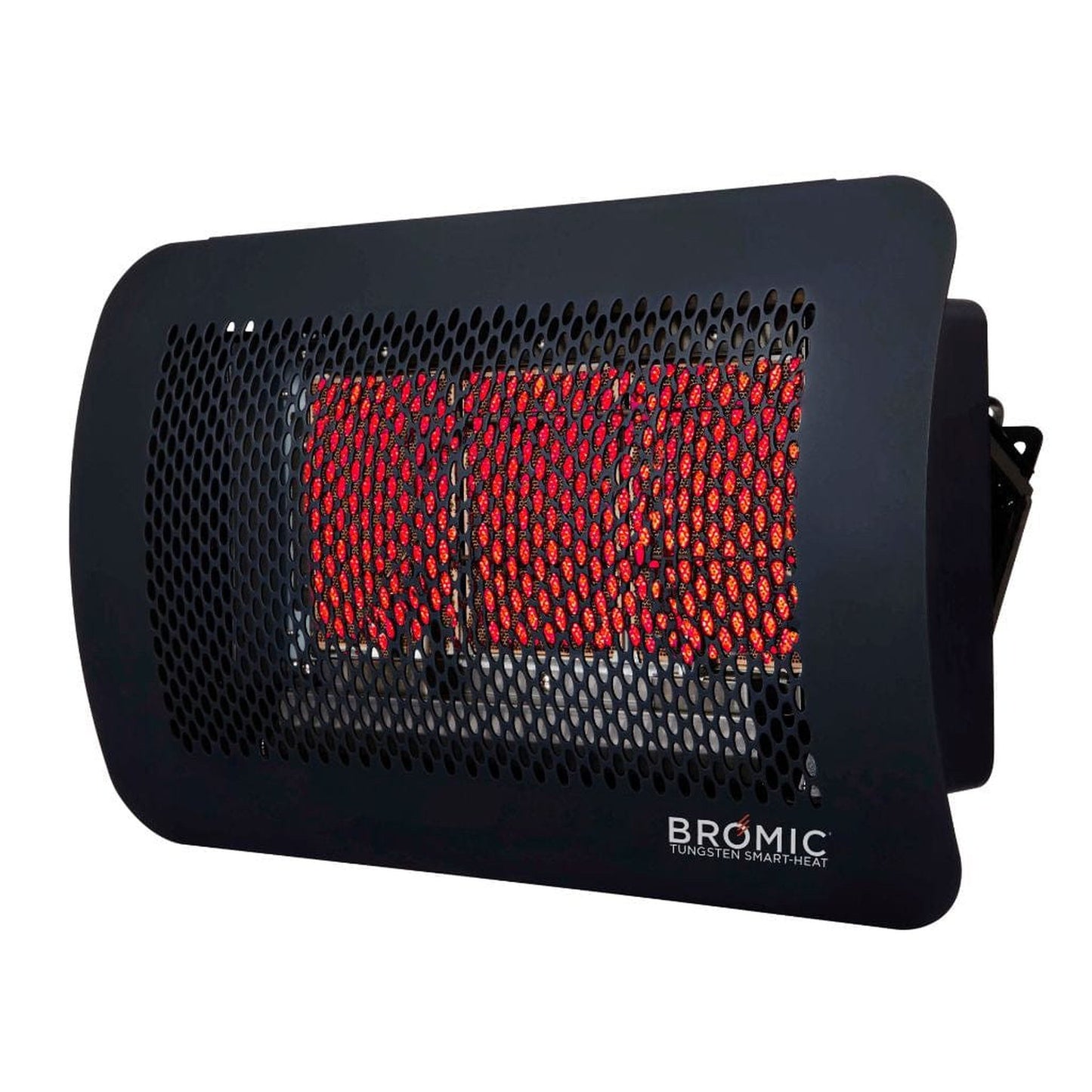 Turn up the heat with the Bromic Tungsten Smart-Heat™ Gas Series. This powerful radiant heater can quickly heat up outdoor areas of up to 215ft2 , providing a comfortable, warming red glow all year around. With its stylish matte black design and exceptional wind resistance of up to 8mph, this heater will keep you and your guests warm at any time of the year. Chose between 26,000 BTU and 43,000 BTU heating power and natural gas or propane (LPG) options.