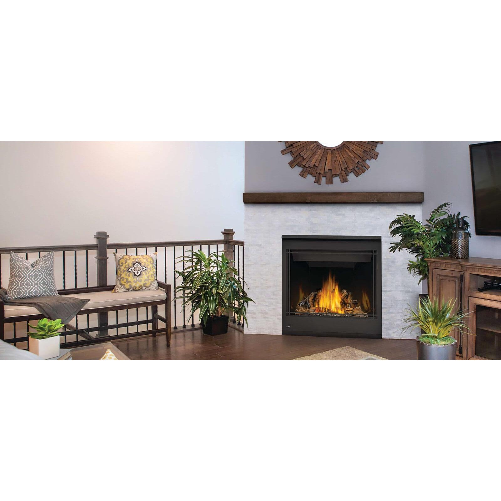 EXCLUSIVE, MOST REALISTIC, HAND-PAINTED LOG SET. The Continental CX36 gas fireplace enhances the atmosphere in any room with the most industry realistic, exclusive PHAZER® log set and glowing ember bed.
