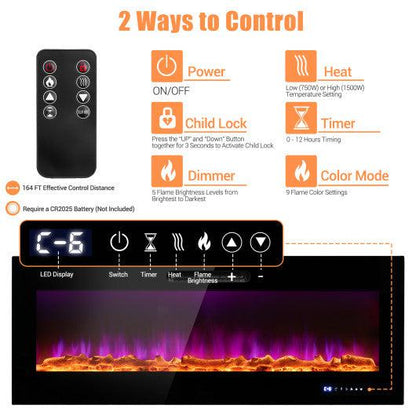 Costway 50" Wall Mounted Recessed Electric Fireplace with Decorative Crystal and Log