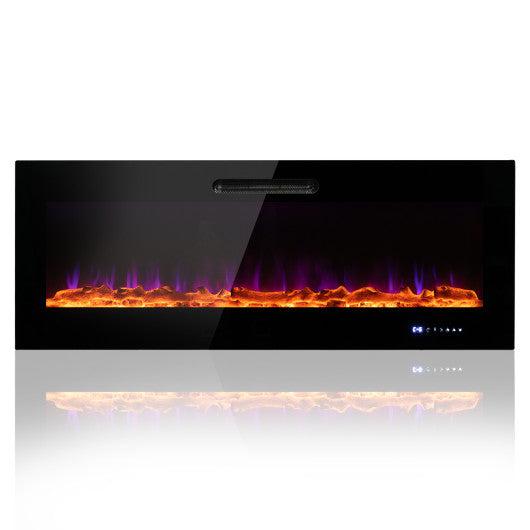 Costway 60" Wall Mounted Recessed Electric Fireplace with Decorative Crystal and Log