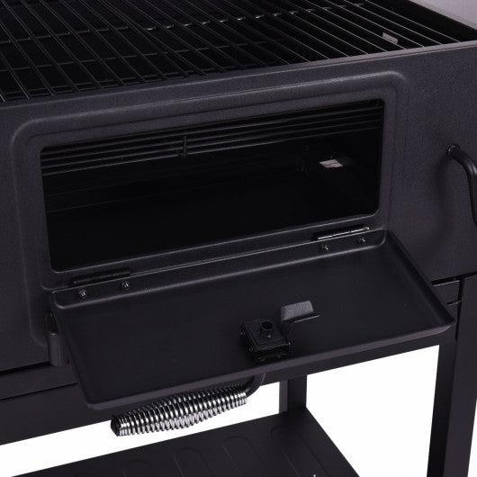 The charcoal grill with 2 wheel base with bottom storage shelf is perfect for outdoor use. This is practical and fashionable charcoal grill which is all about bringing true smoked flavor to every mouthwatering bite. It is made of a durable cold rolled plate coated with a high-temperature black paint finish. The charcoal grill is built into a mobile cart with two wheels and a built-in storage shelf that's great for anything from cooking utensils to your favorite sauces and rubs. Just place the order now!