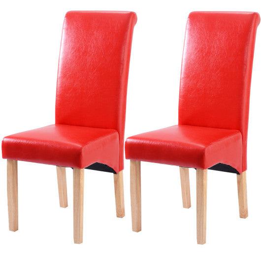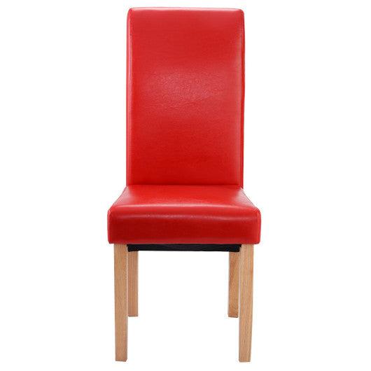 Costway Set of 2 Red Leather Wood Contemporary Dining Chairs Elegant Design Home Room