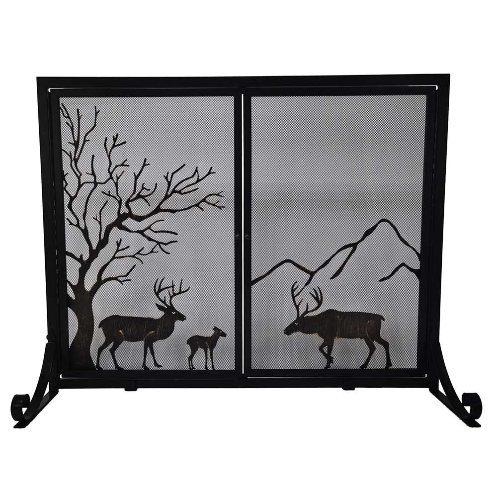 Dagan Industries 40" x 31" Black Wrought Iron Dear Design With Doors Fireplace Screen