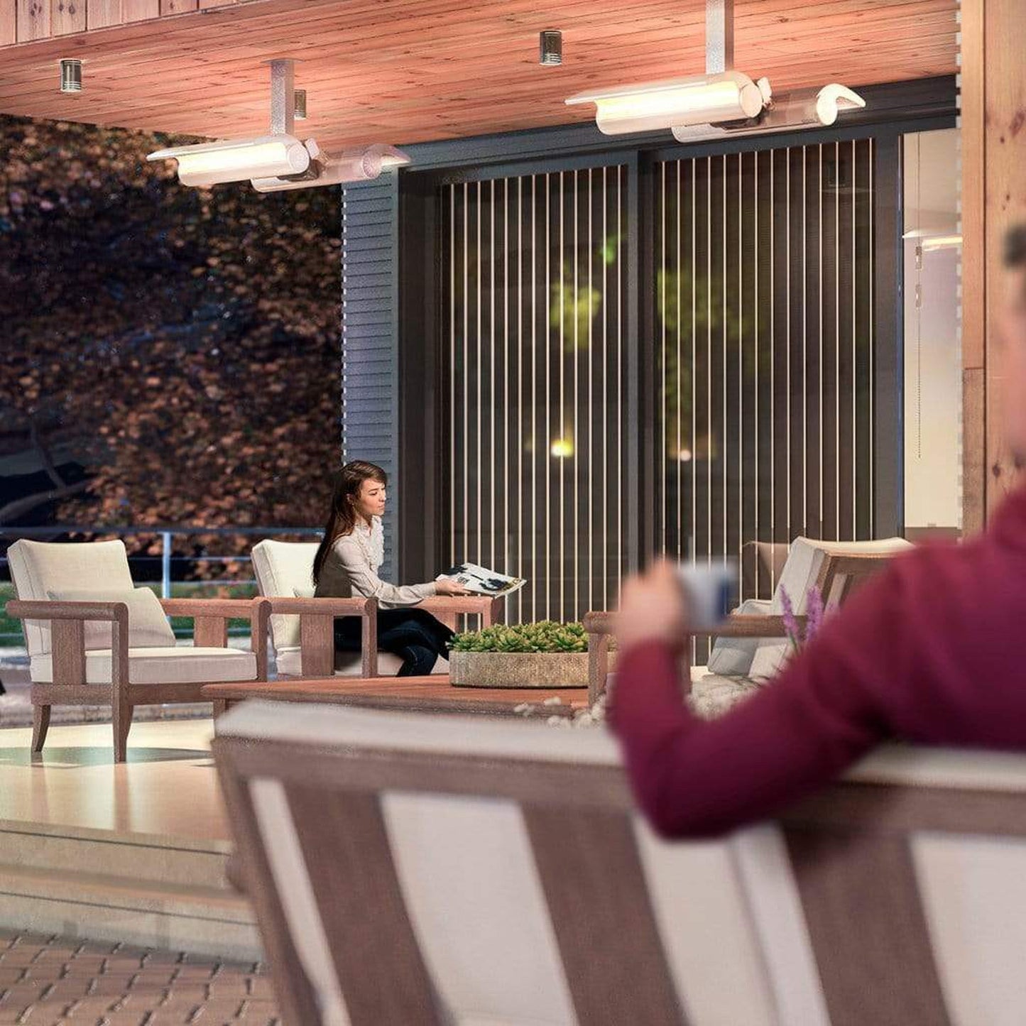 The Dimplex DSH series heaters are ideal for use in low lighting environments like restaurants and outdoor entertaining spaces. Reaching maximum heat in less than 3 seconds, this product provides premium comfort, while mirroring the quality of interior décor, outdoors. This infrared heater is compatible with wall, ceiling, and stand mounts - ceiling bracket and mounting stand sold separately.