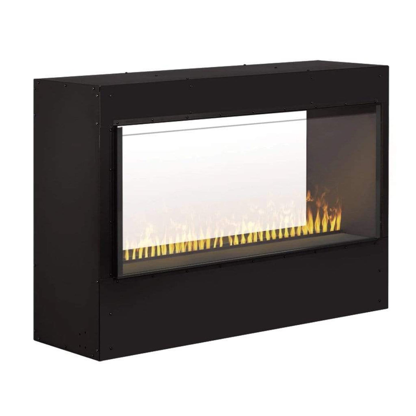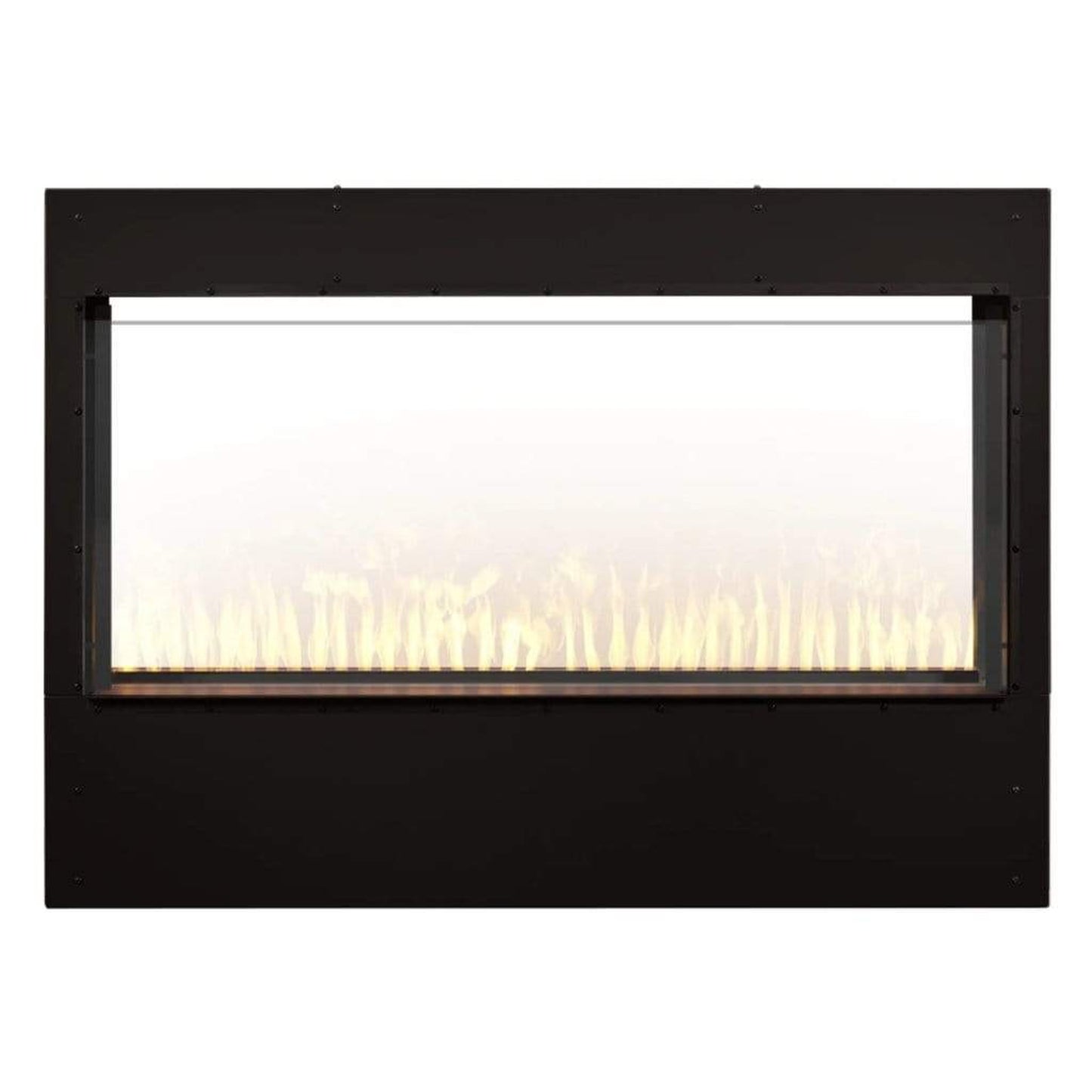 - The fireplace viewing area is protected with a transparent pane of glass with black edging on the two vertical sides for seamless installation