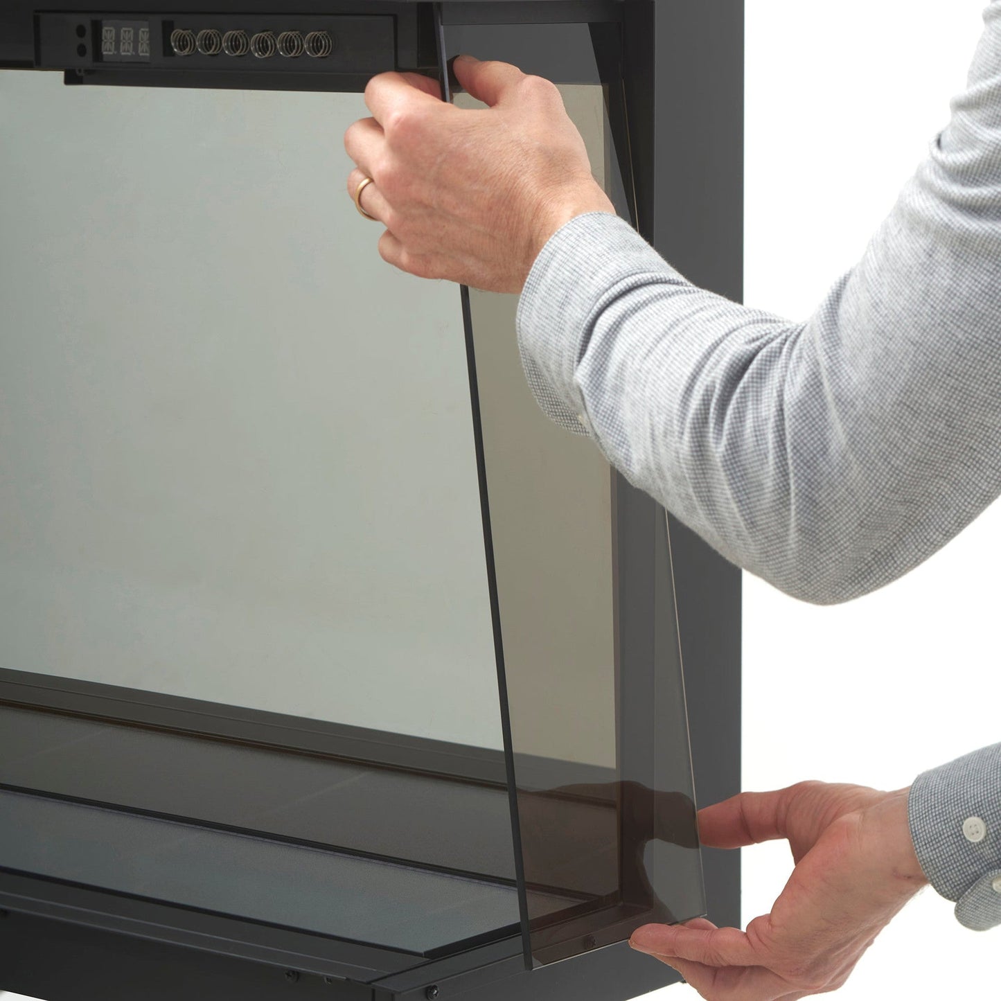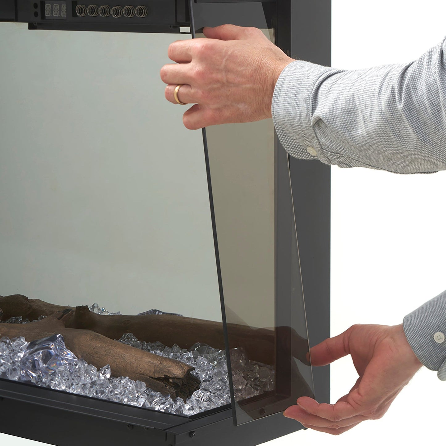 - As the flames do not emit heat, the front glass remains cool to touch, ensuring safety for children and pets