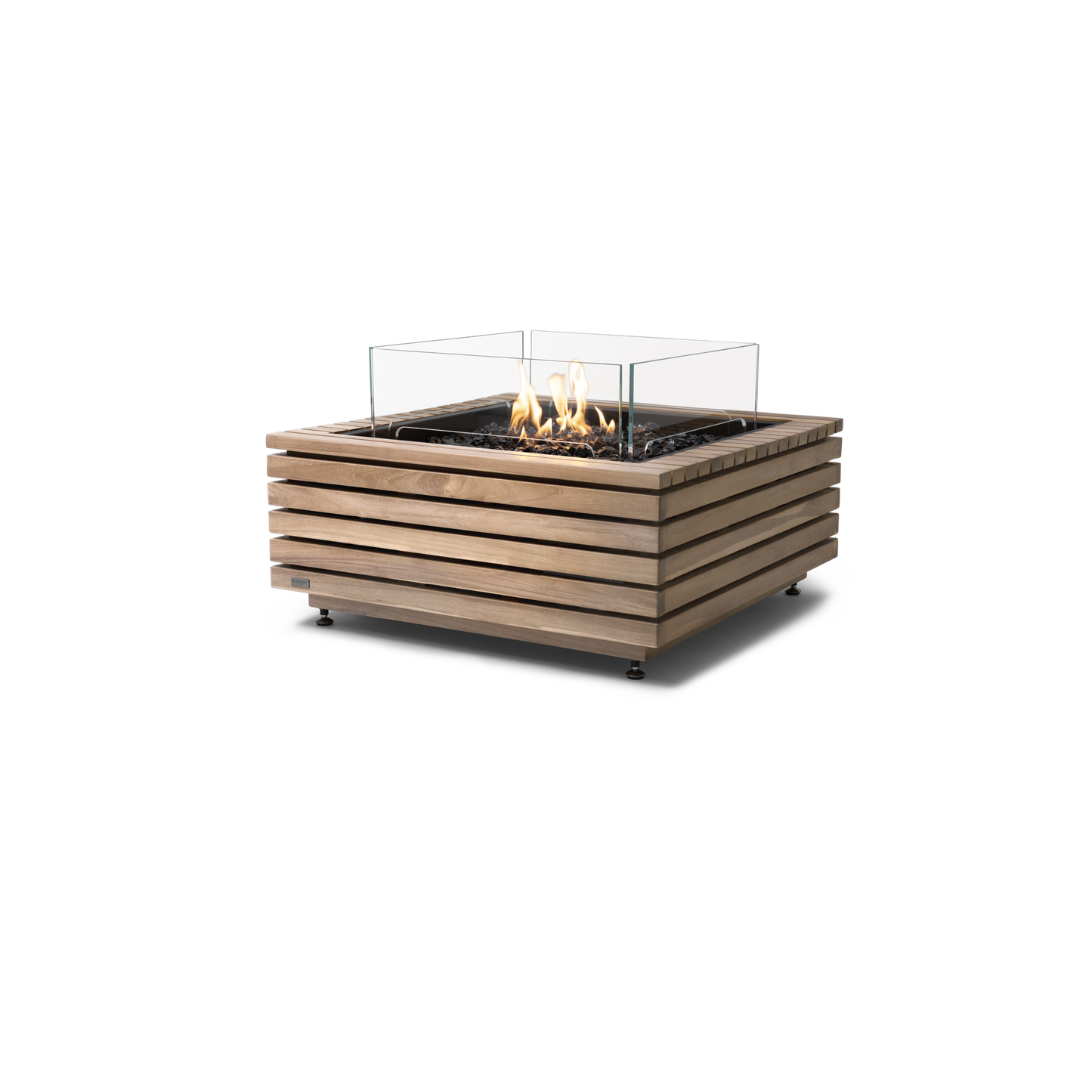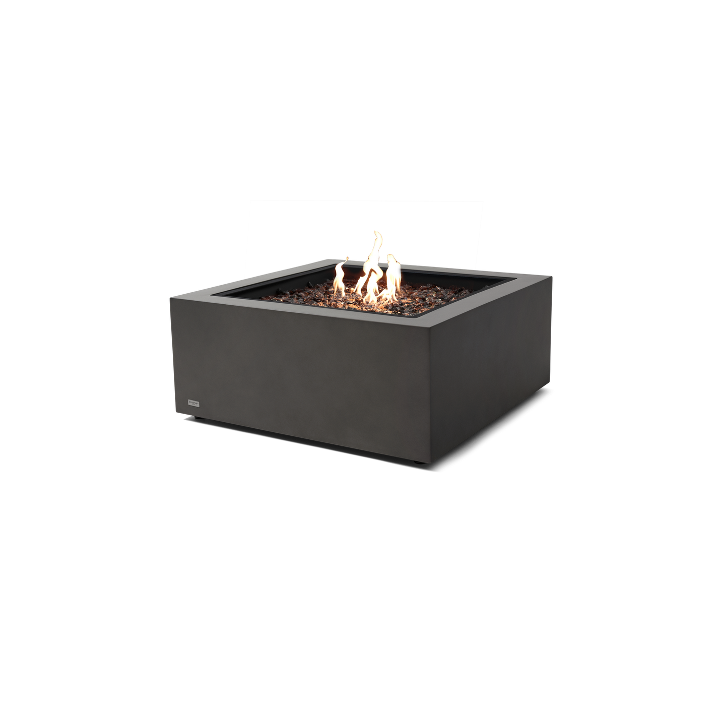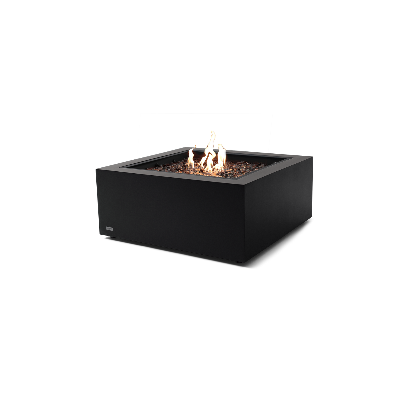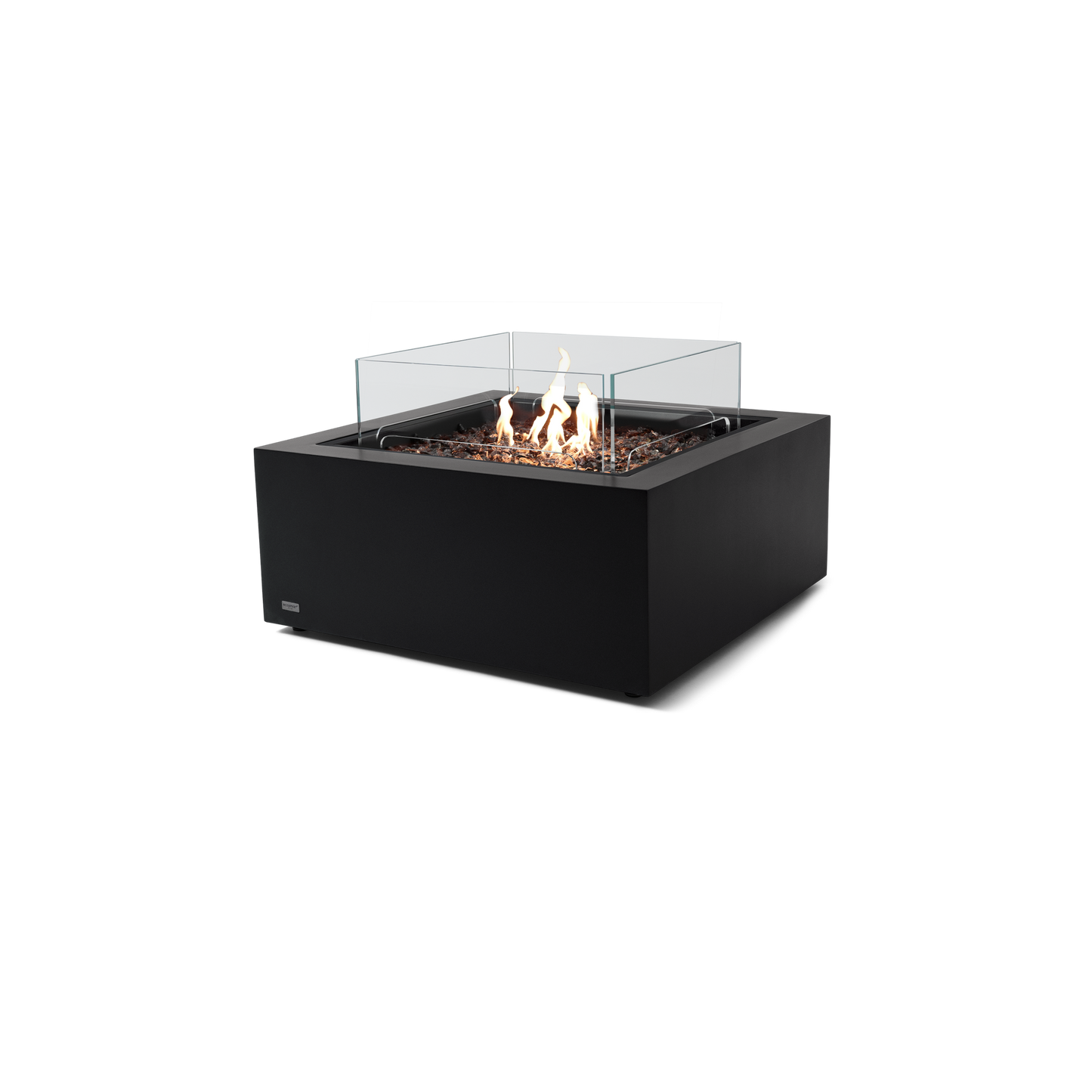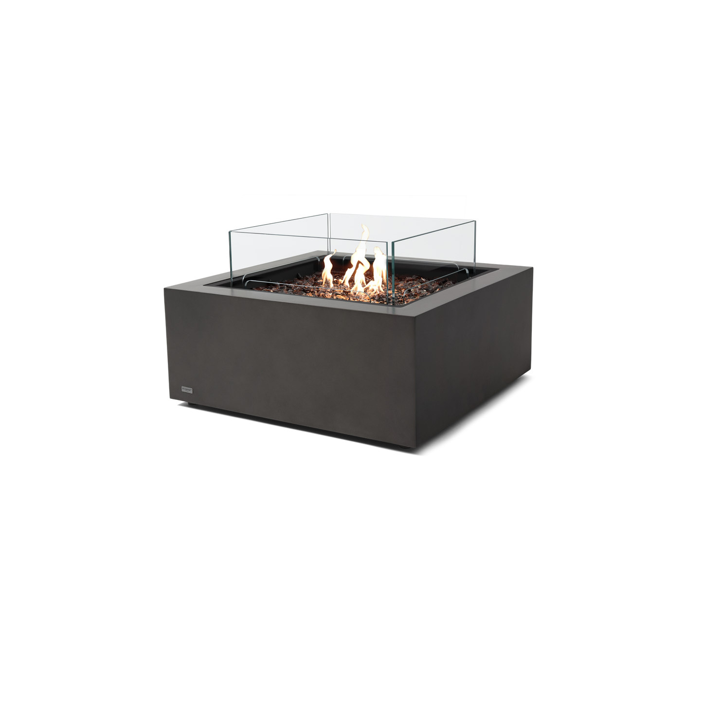 The square fire pit table is available in Ethanol, Natural Gas or Liquid Propane and comes with a toughened glass screen, decorative glass media and the Winter Bag/Summer Cover as standard features.