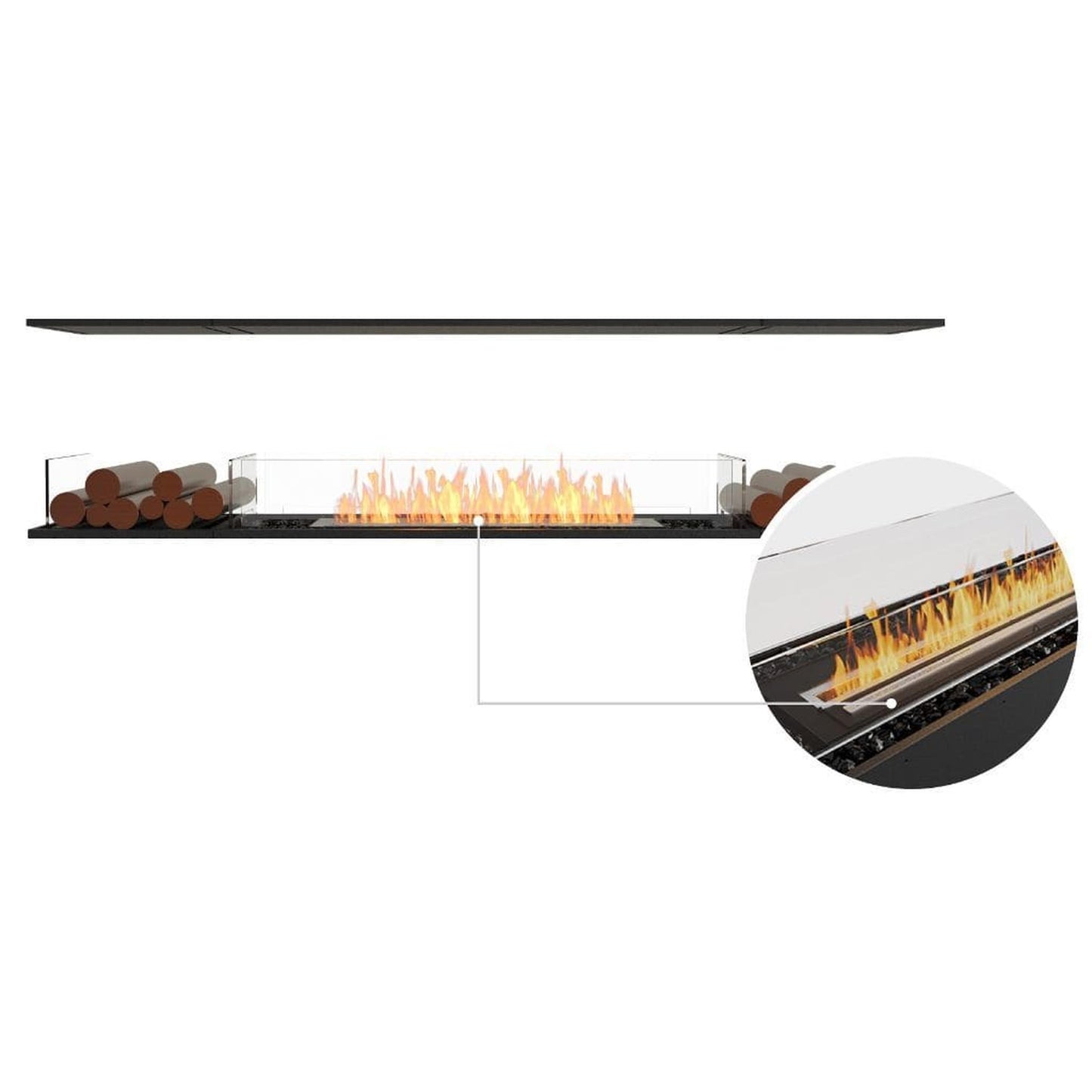 Built-in See-Through Ethanol Firebox with Box on the Left, Right, or Both Sides