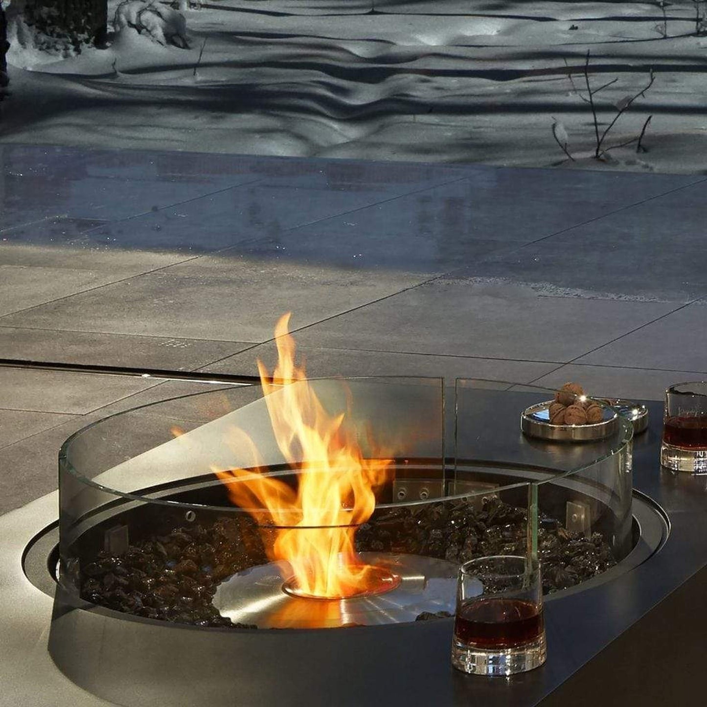 Fire Screens complement the esthetic of our collection. A highly desired accessory to an outdoor fireplace. Glass screens stabilize the flame in windy conditions and provide an added layer of safety, peace of mind and comfort.