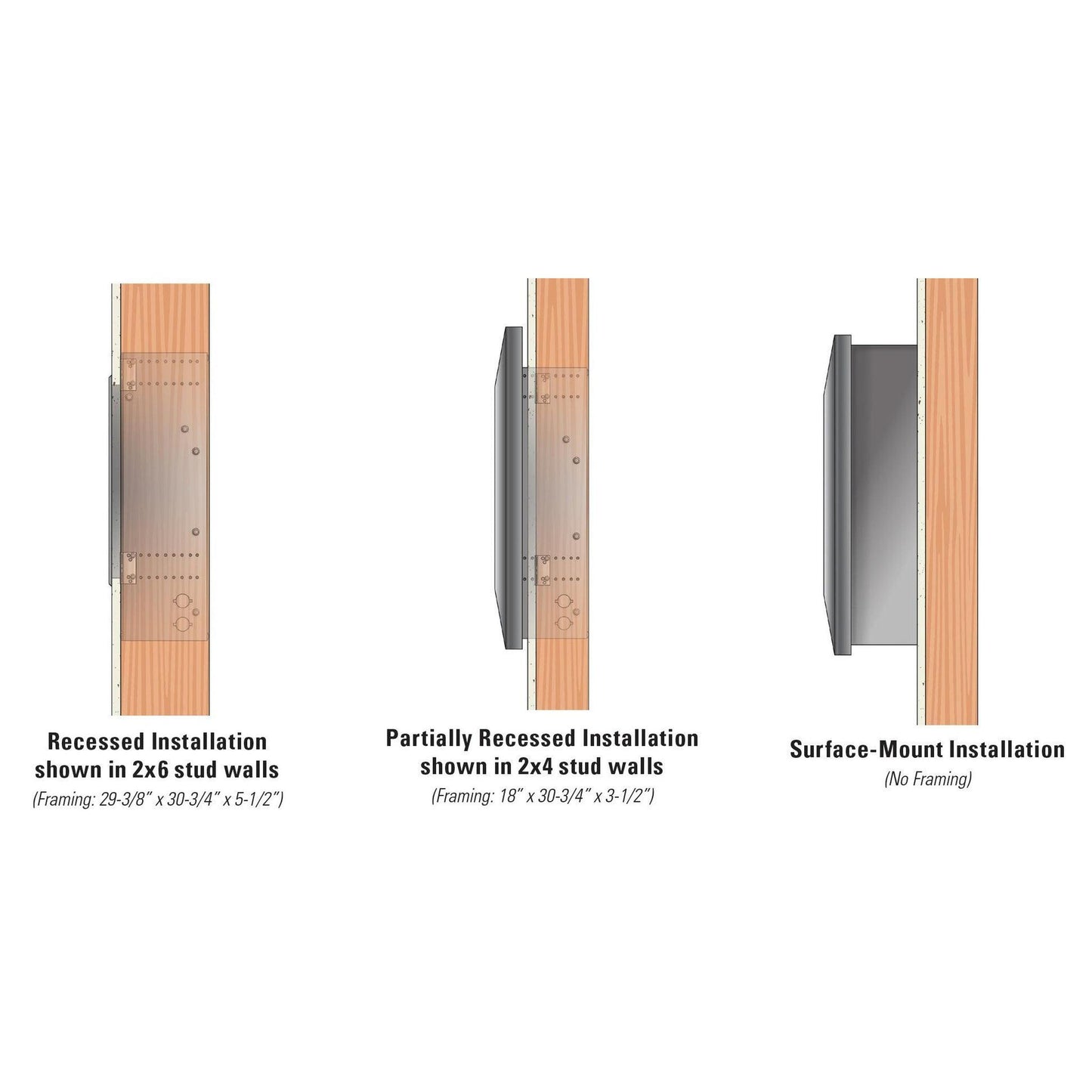 - Non-combustible material (tile/stone) for Partially Recessed and Fully Recessed installation