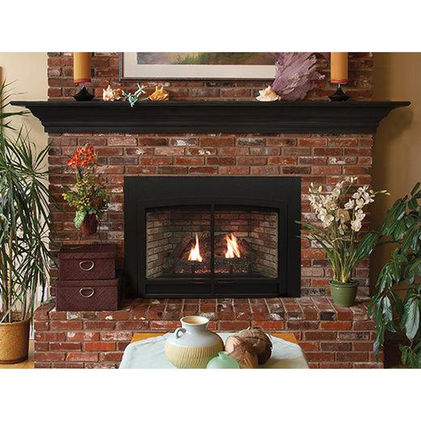 - Innsbrook Direct-Vent inserts feature optional liners and hand-painted ceramic fiber logs, nestled atop the variable flame height burner, to create an exceptionally attractive traditional fireplace