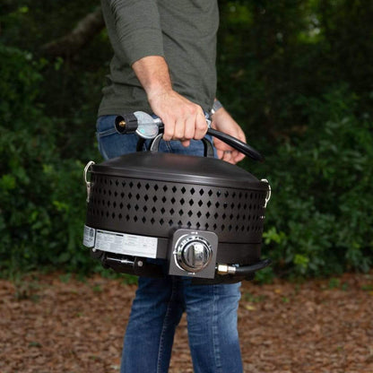 Fire Sense is proud to introduce the Sporty Campfire Portable Gas Fire Pit. This compact and campsite-friendly fire pit packs an impressive 60,000 BTU capacity and fully adjustable flame. Spring-hinged legs and a removable lid with secure clamps make this 15” diameter fire pit convenient to pack in the smallest car trunk for a weekend getaway or an impromptu picnic on the beach. The Sporty Fire Pit comes with lava rock for attractive looks and flame dispersal, as well as a regulator and hose to attach the pit to your own standard propane tank, which is not included.