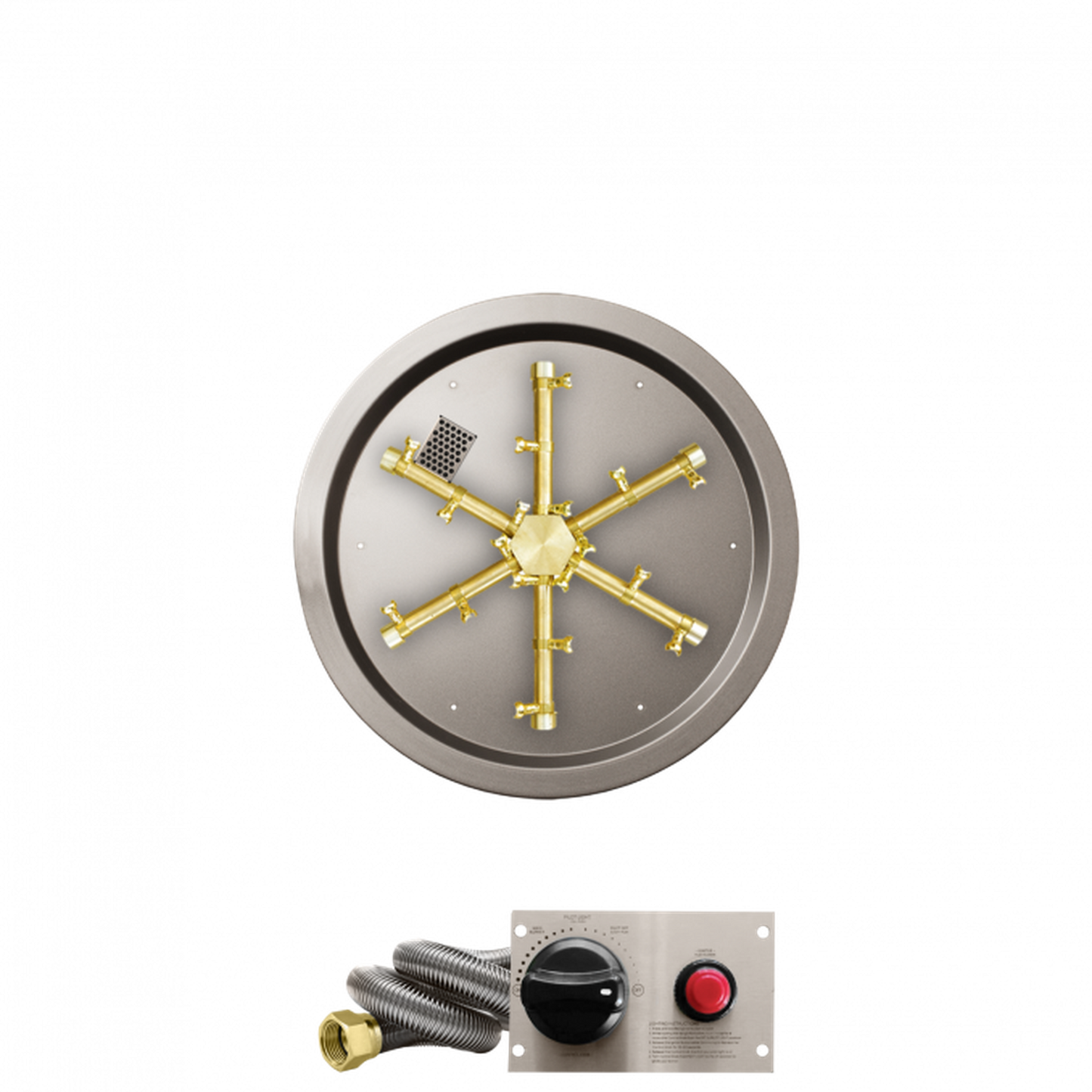 - Choose from a range of ignition systems, starting with the standard match throw system for simplicity, or upgrade to the safety ignition for added convenience and peace of mind. For the pinnacle of ease, opt for the AWS System, ensuring effortless control and customization. The unique injector style orifice of our burner system creates a mesmerizing flame that is truly one of a kind, setting the stage for unforgettable moments around the fire. Whether you prefer a round, square, or linear format, our Pro Brass gas fire pit burner system offers unmatched versatility and style. Elevate your outdoor ambiance with the finest quality and aesthetics - choose our Pro Brass gas fire pit burner system for an unparalleled experience.