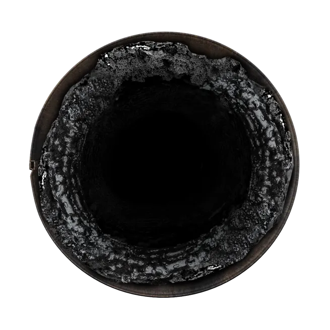 SECOND STAGEYou will notice minor or formation creosote buildup. The creosote is thicker, starting to form layers, and it looks more like tar than soot. Sometimes, it may look flaky to an untrained eye, but the creosote has firmly adhered to the pipe lining. A more industrial and rigid approach to cleaning is needed. Rotary loops and drills are required to remove the creosote at this stage. Often, chemical solvents help loosen the buildup for easier removal. Sprinkle some creosote treatment powder onto a low fire or bed of coal twice-weekly for four (4) weeks to break apart the creosote buildup. Then use a chimney brush or rotary loop and drill to clean out the loosened creosote. ![]() STAGE 3There is a large amount of coal tar encrusted on the pipe lining. The rotary loop cannot penetrate or spin thru the gunk, and treatments are deemed ineffective. At this stage, the buildup is dangerously flammable. The creosote is so thick that it acts like fuel, catching fire quickly. The creosote can still be removed at this stage, but more often than not, the replacement of flue pipes is more cost-effective. |