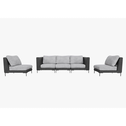 SKU:Black Wicker Outdoor Sofa with Armless Chairs - 5 Seat - Pacific Fog Gray